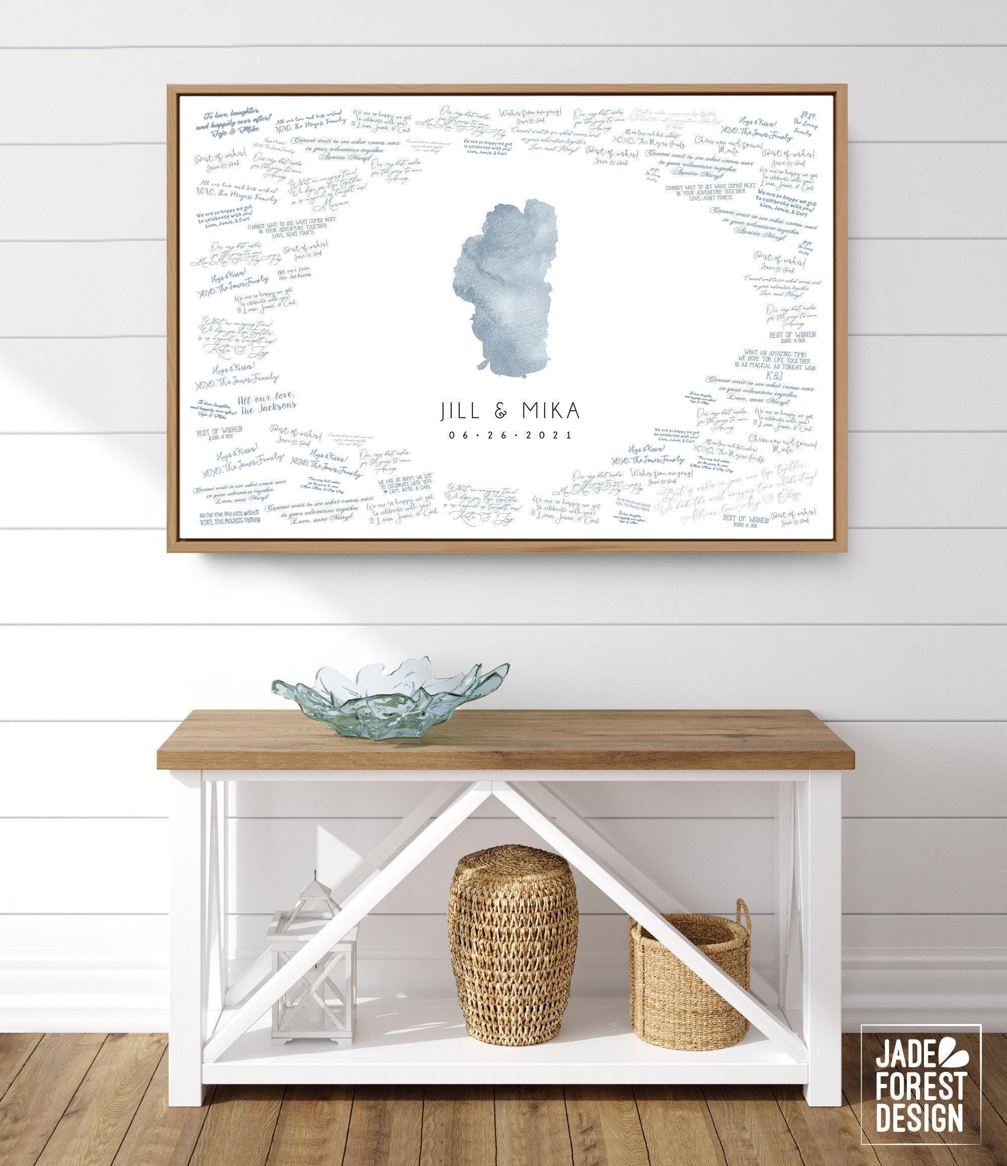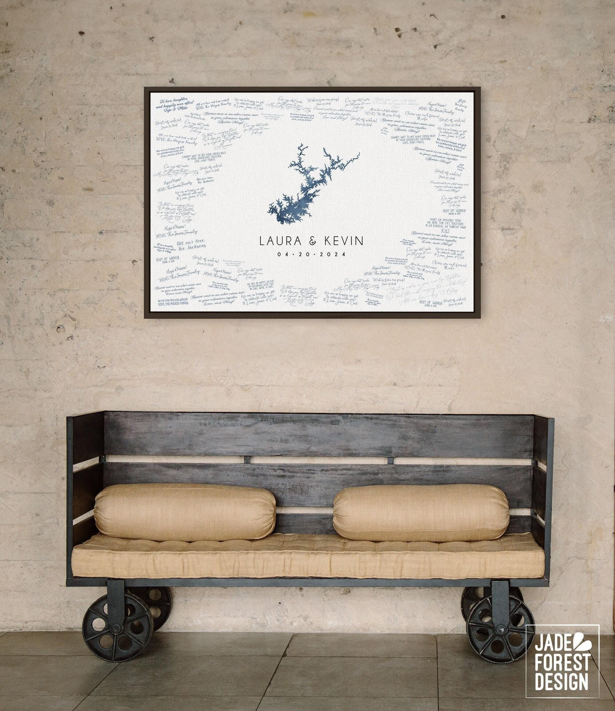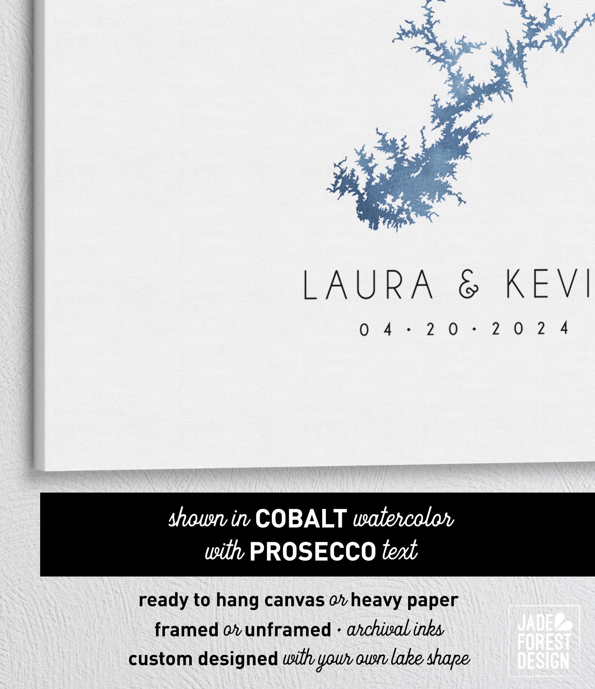 Celebrate your special day with a unique wedding guest book alternative that captures the beauty of your favorite lake in stunning cobalt blue watercolor art. This personalized lake map guestbook transforms traditional guest signing into a memorable keepsake, blending custom lake canvas artistry with elegant design. Whether displayed framed or unframed, this XL framed guestbook invites your loved ones to leave heartfelt messages around a meaningful map, creating a cherished memento.