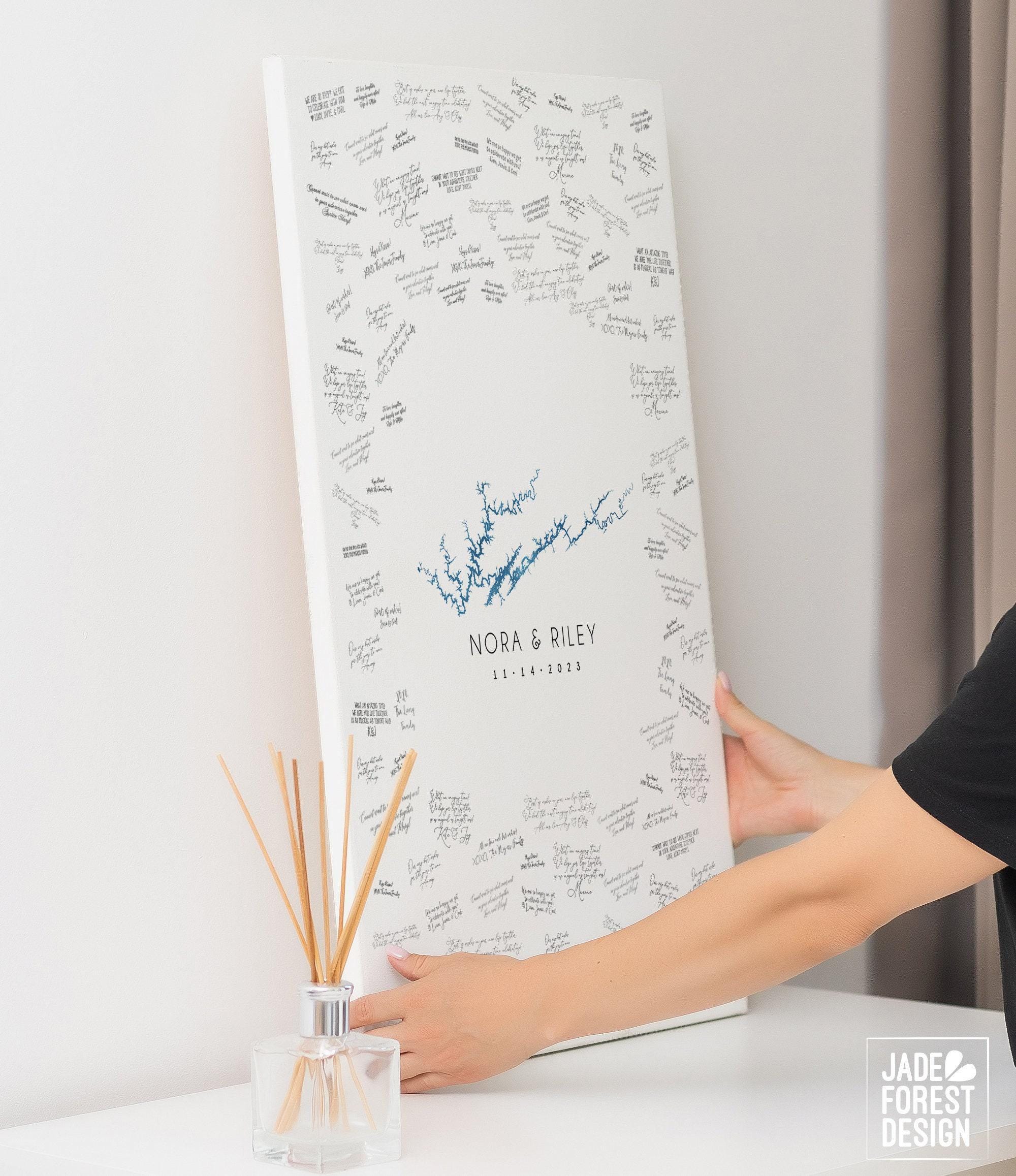 Thank you for choosing Jade Forest Design for your wedding keepsake. Created with ♥ in the USA, we pride ourselves on crafting beautiful custom art that celebrates your most cherished moments. Explore more lake maps and guest book ideas at our Etsy shop or subscribe for exclusive offers at https://jadeforestshop.com/pages/newsletter.