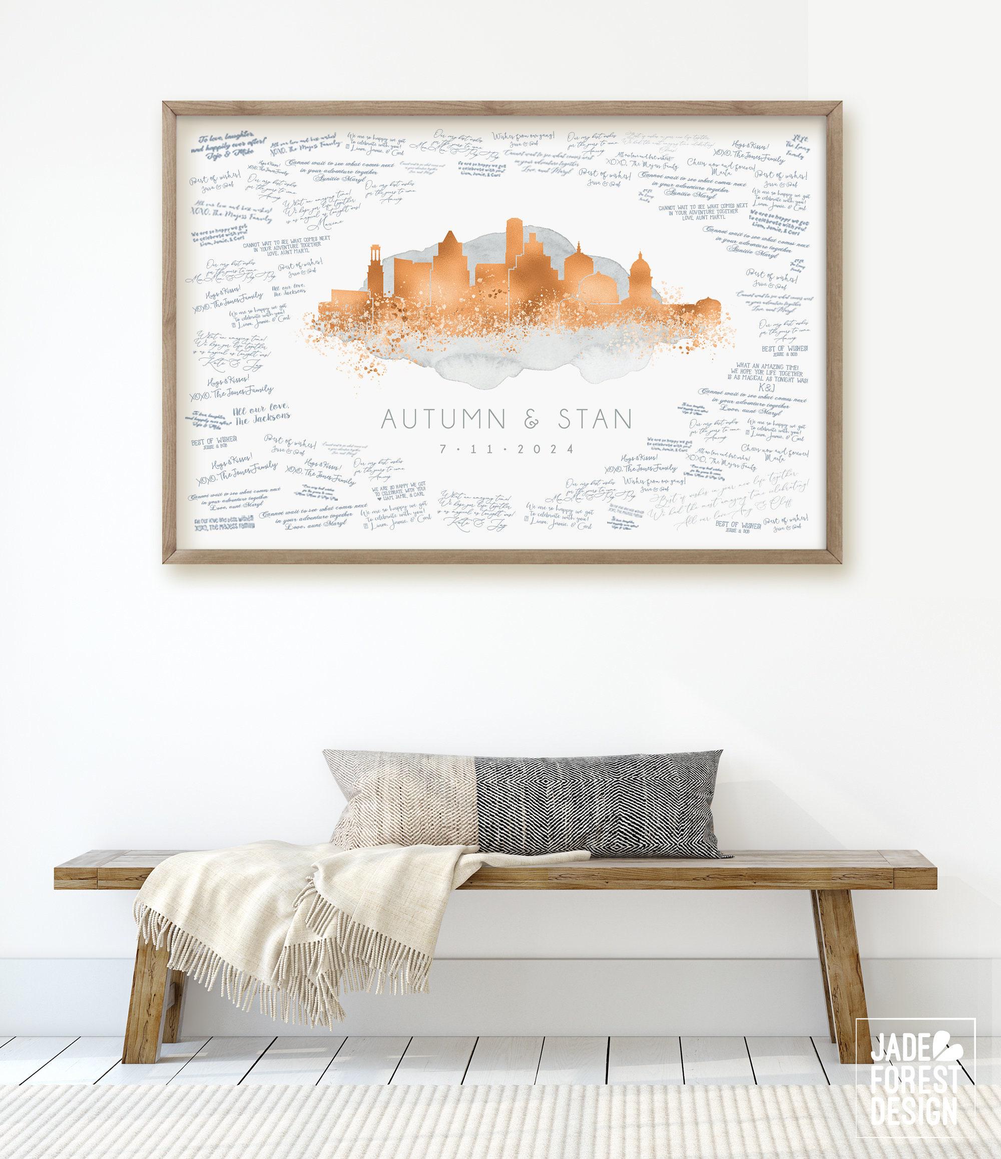Thank you for choosing Jade Forest Design for your custom wedding decor. Created with love in the USA, we’re here to help make your special day unforgettable—just ask any questions via our Etsy shop messaging! Explore more unique skylines and guest books at https://www.etsy.com/shop/JadeForestDesign.