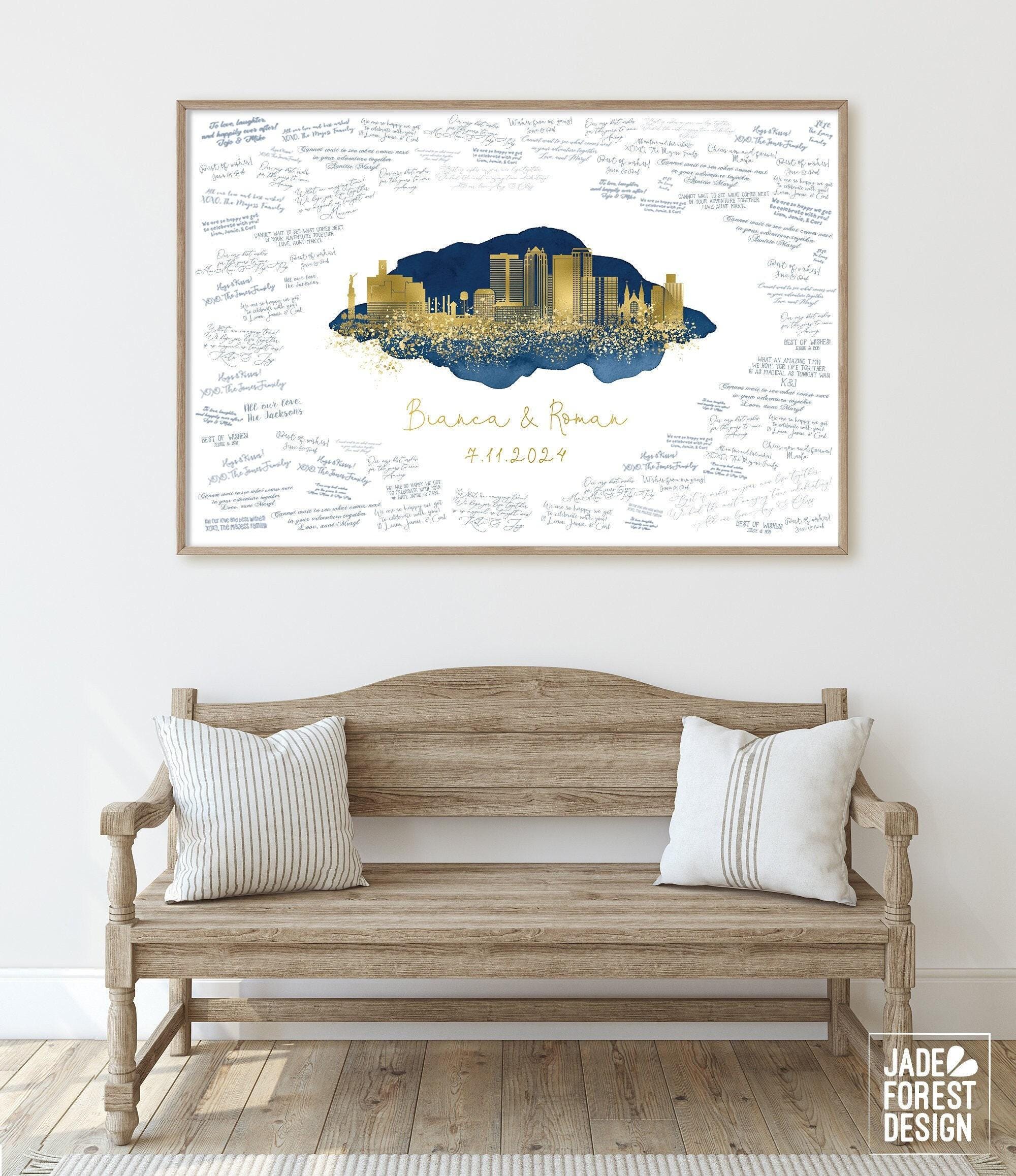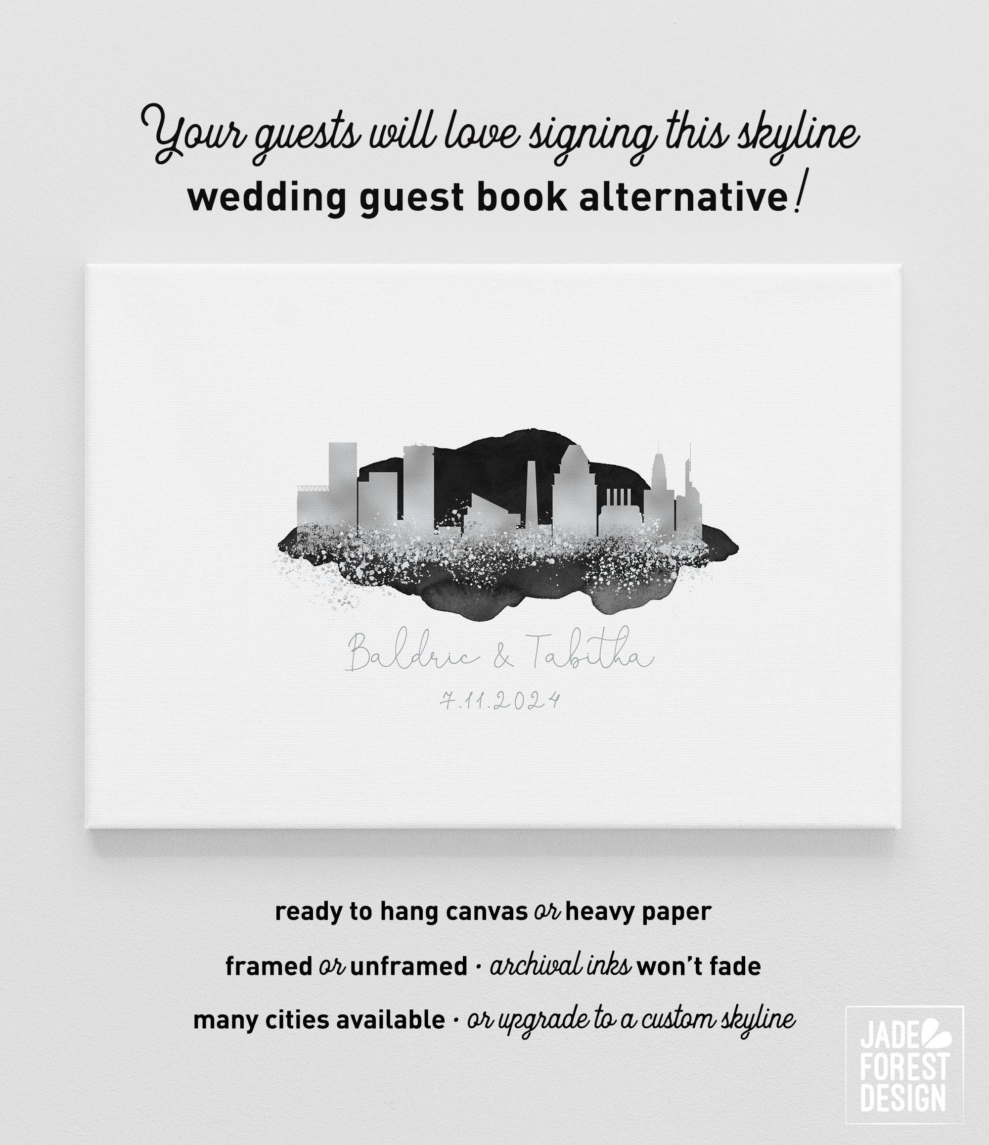 Are you in love with the city you're getting married in? With the one you're moving to? Or maybe where you're from? Celebrate your love affair with our CUSTOM SKYLINE GUEST BOOK. It features your city skyline in a stunning faux metallic, enveloped with romantic watercolor. The artwork will be personalized with your names and wedding date, your choice of colors, and skyline (see list in Photos for available cities).