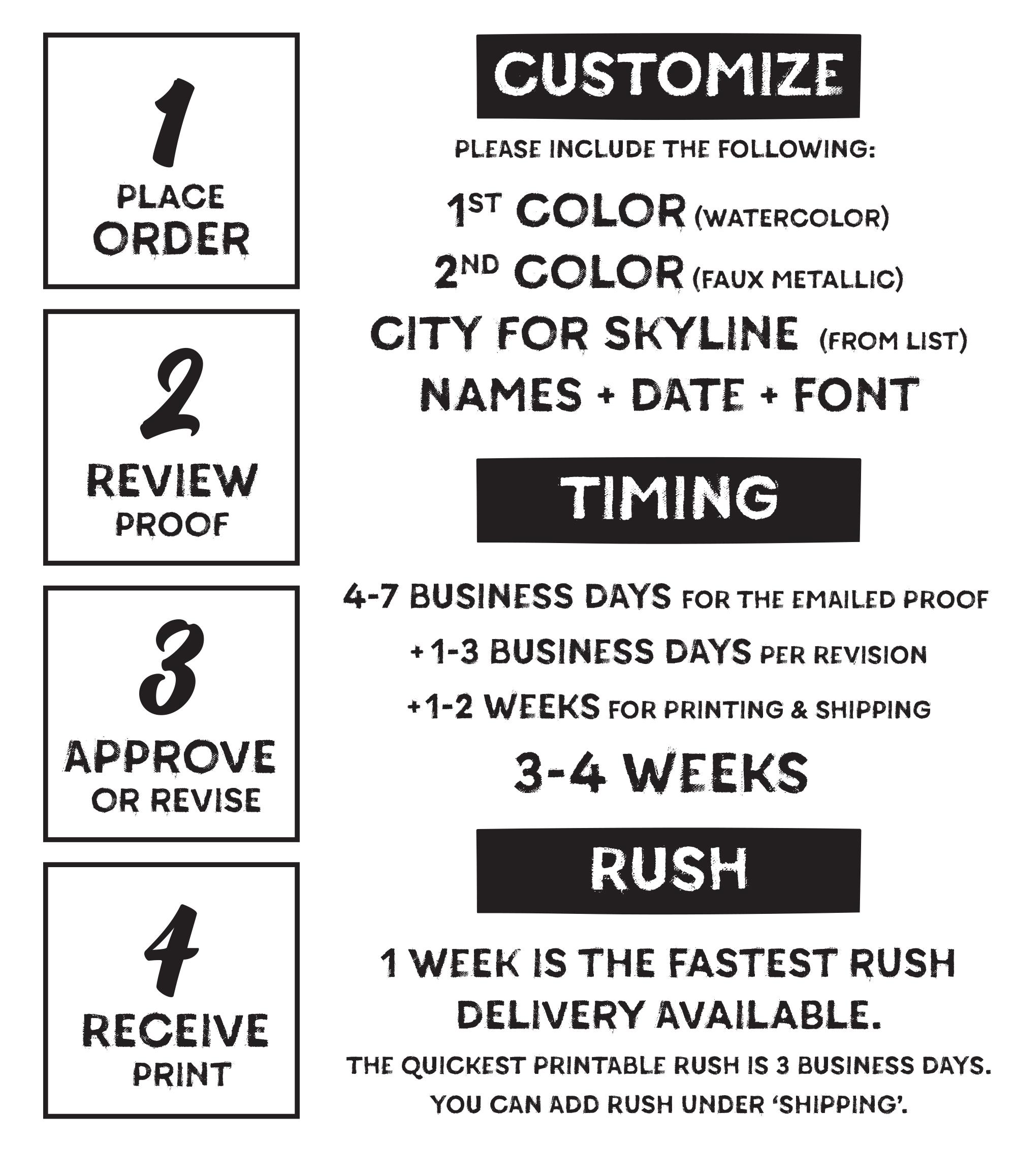 You may also choose to rush the printing & shipping portion of the process only. A link to shipping upgrade options will be included in the email you receive with your proof.