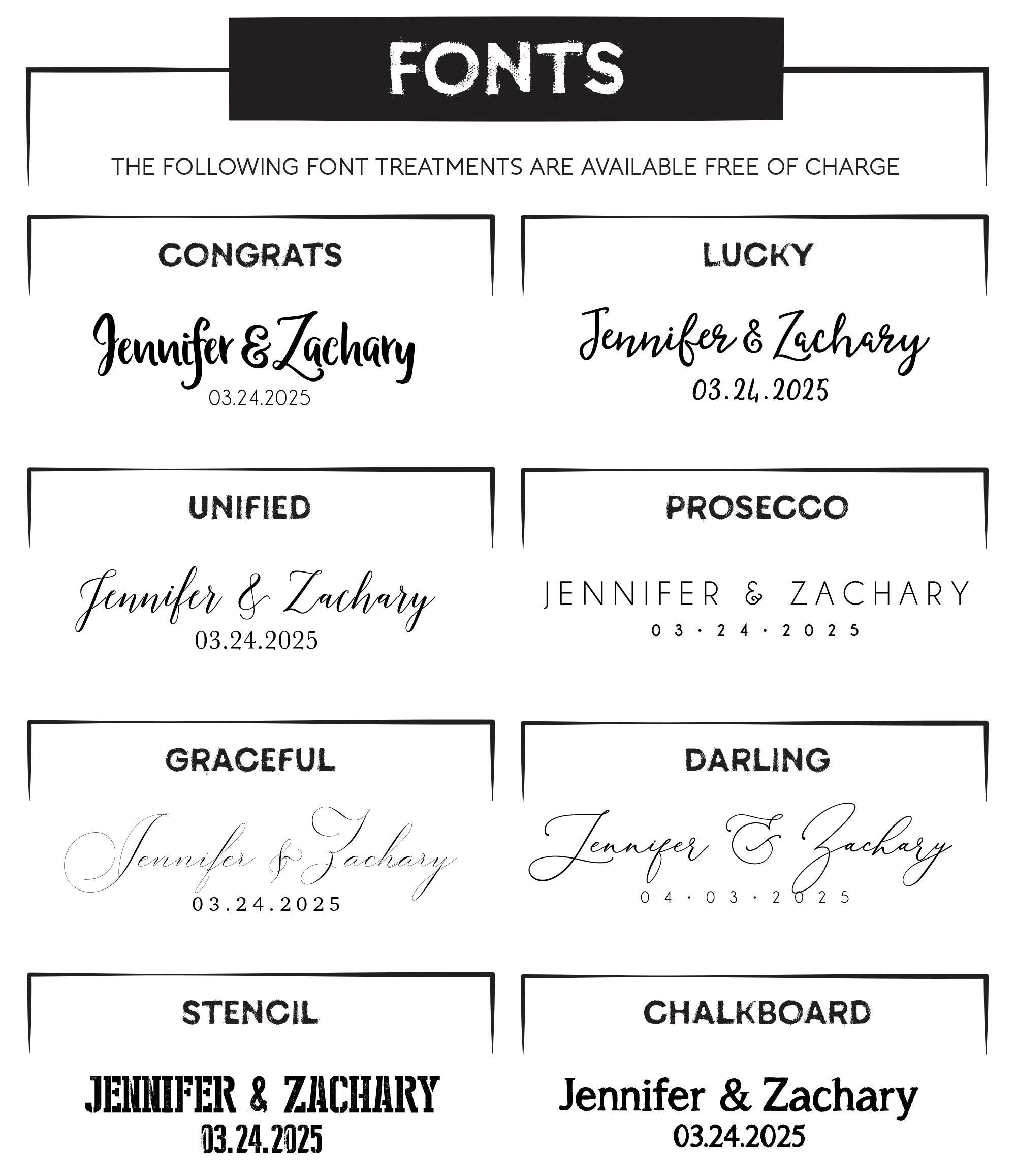 FONTS ➜ No extra charge to use any of the fonts shown in the font chart!