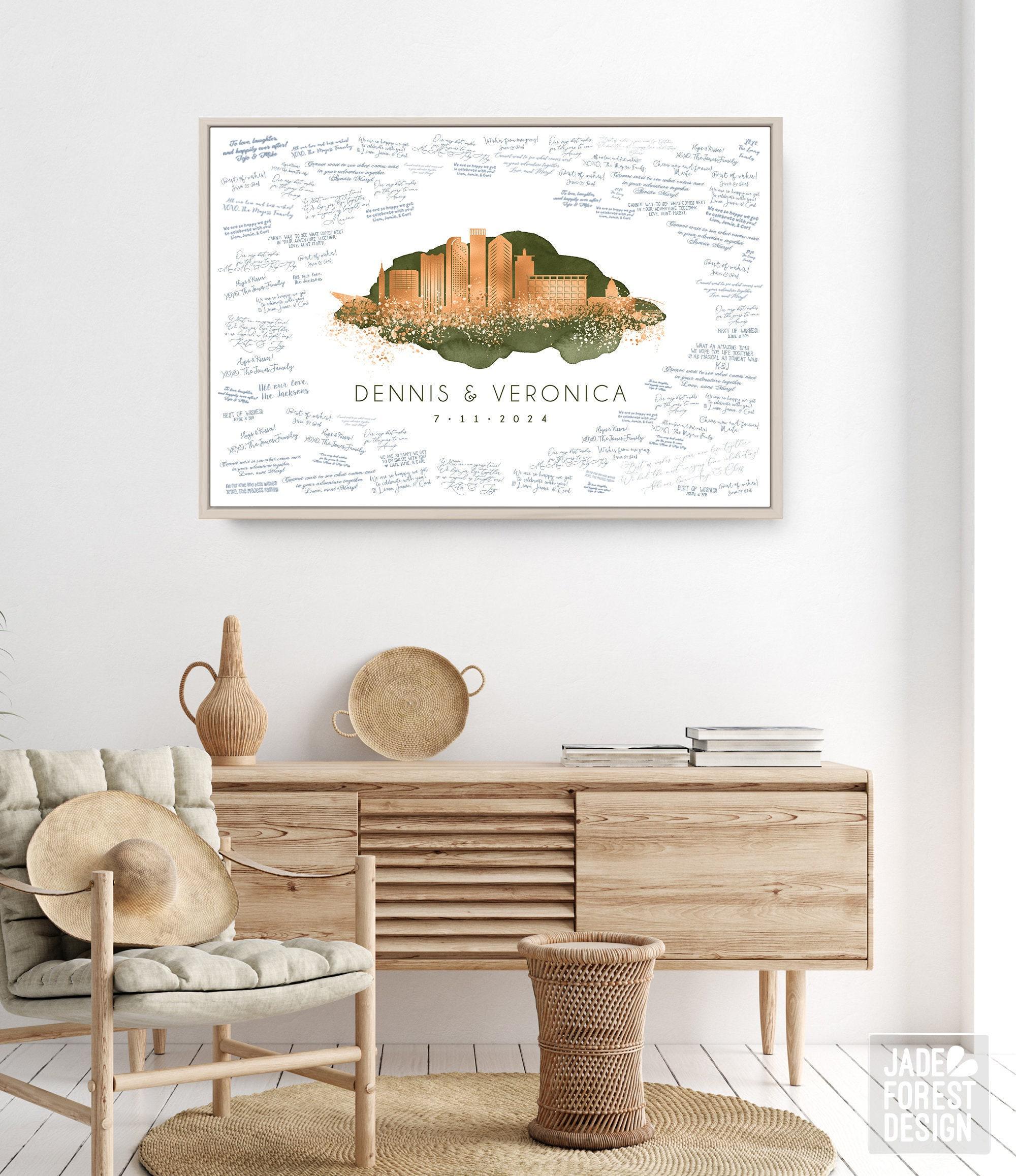 Thank you for choosing Jade Forest Design for your custom wedding decor. Created with love in the USA, we’re here to help make your special day unforgettable—just ask any questions via our Etsy shop messaging! Explore more unique skylines and guest books at https://www.etsy.com/shop/JadeForestDesign.