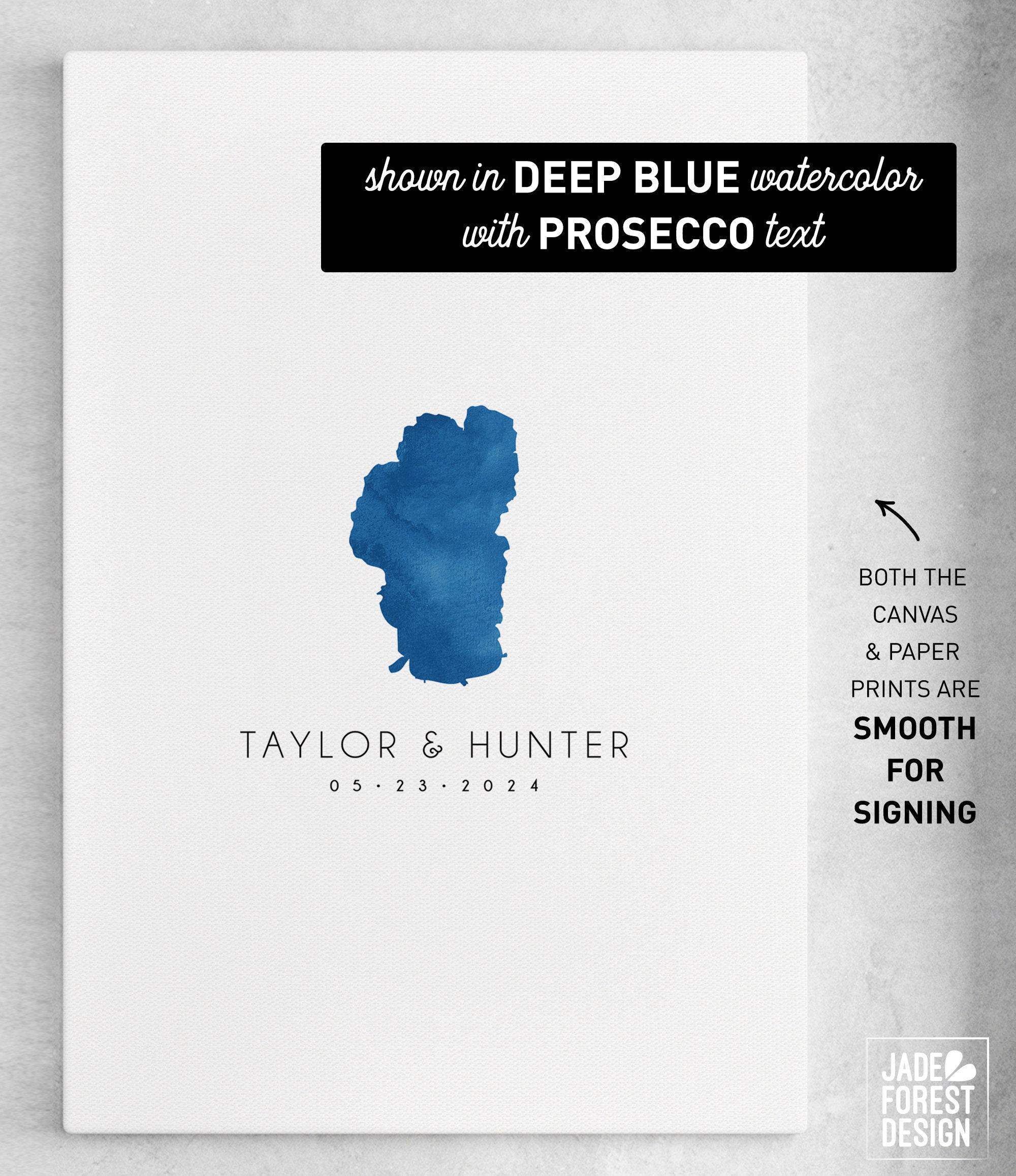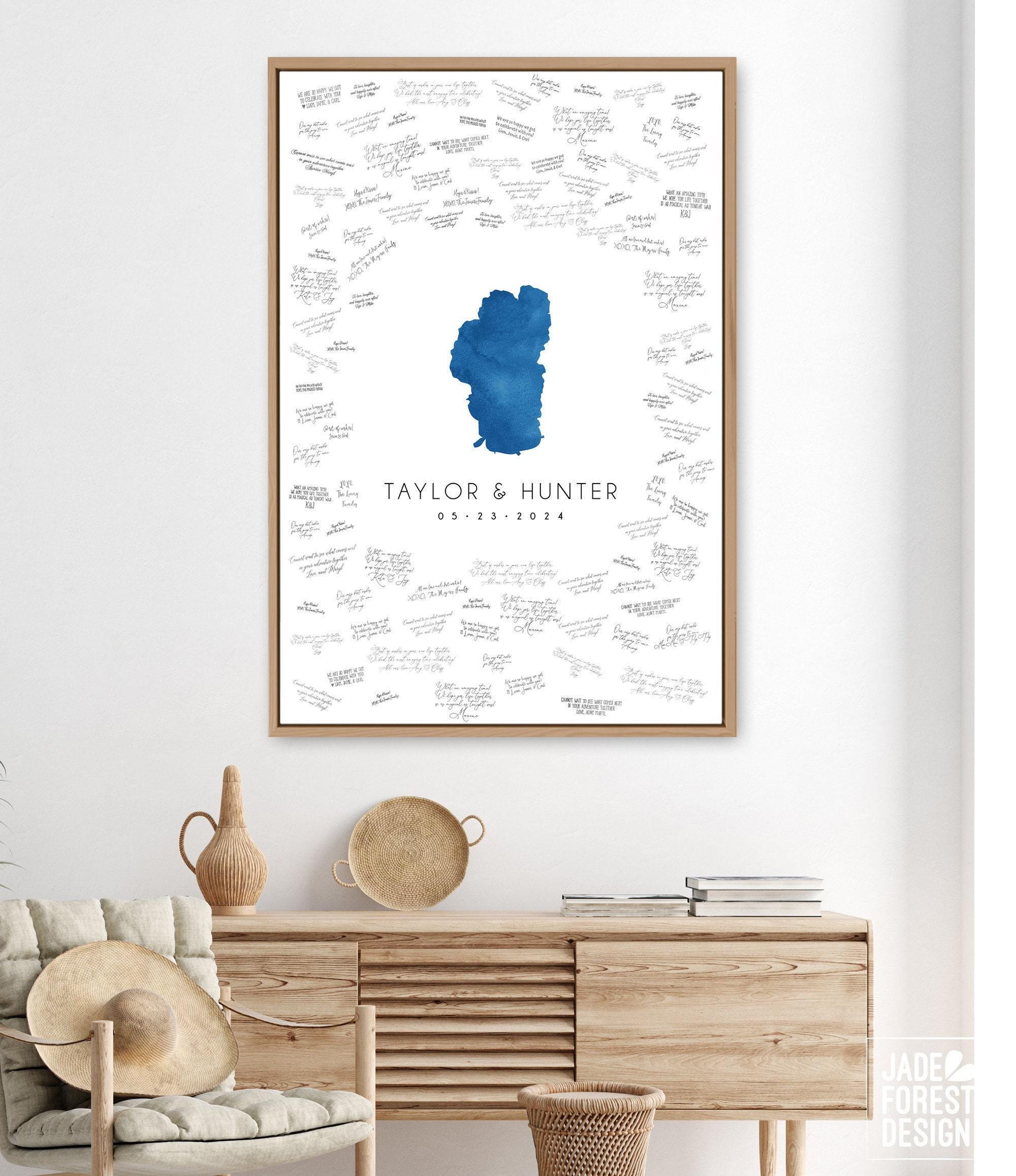 Celebrate your special day with a unique wedding guest book alternative that beautifully captures your favorite lake in deep blue watercolor. This personalized lake map guest book transforms your ceremony into a lakeside celebration, offering a bespoke keepsake sign that guests will cherish. Crafted with care, this custom lake picture blends artistry and sentiment, making it a stunning addition to your Lake Tahoe wedding or any lakeside ceremony.