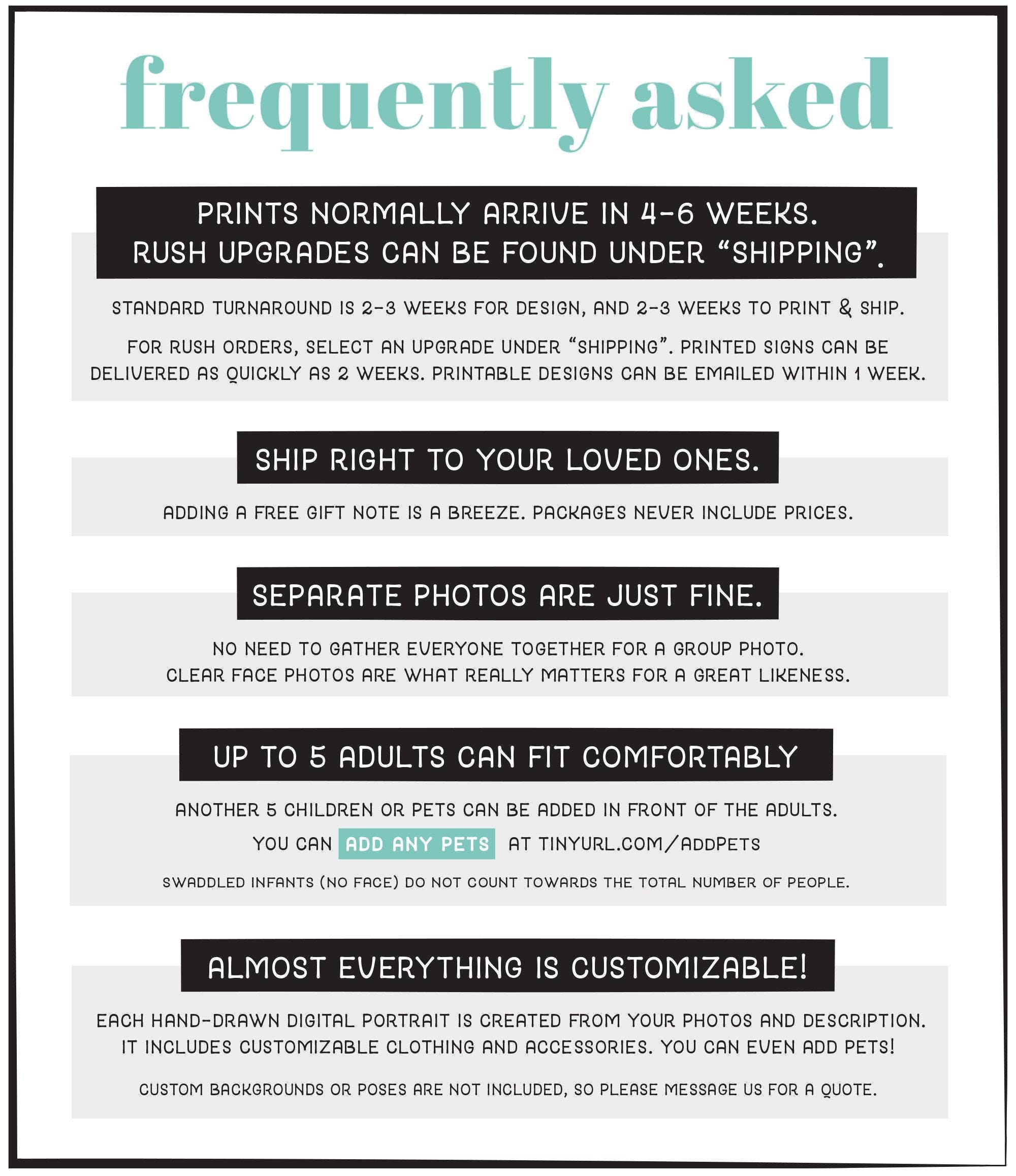 Thank you for choosing Jade Forest Design for your custom family portrait needs. Weβre passionate about turning your memories into beautiful art created with β₯ in the USA. Visit our shop for more unique portraits: https://www.etsy.com/shop/JadeForestDesign