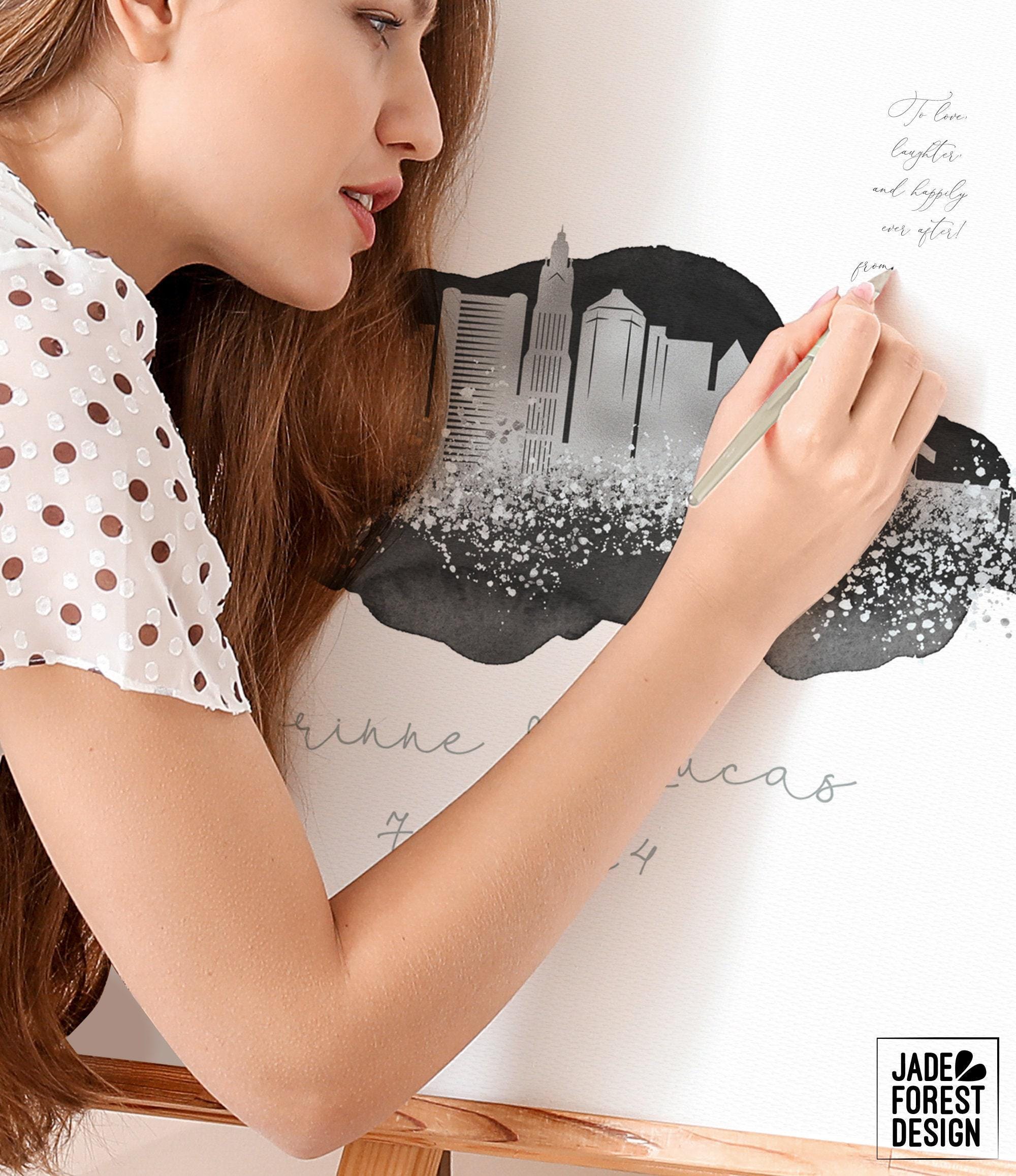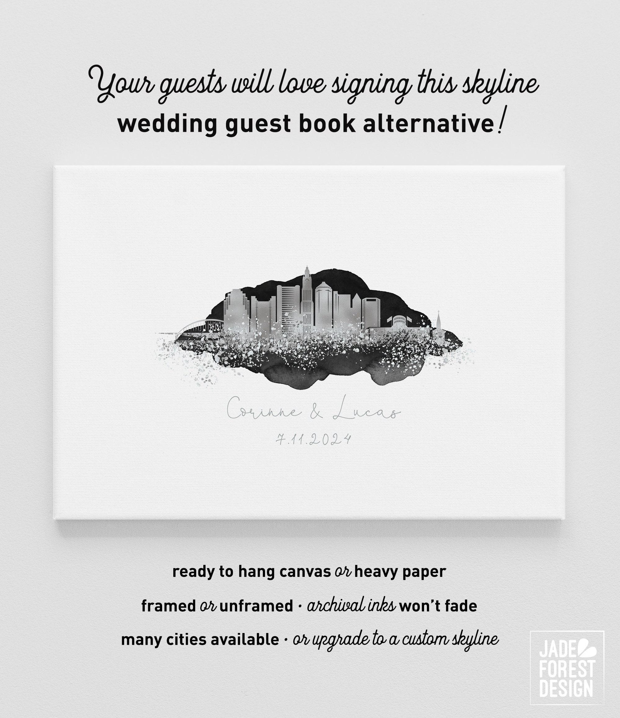 Are you in love with the city you're getting married in? With the one you're moving to? Or maybe where you're from? Celebrate your love affair with our CUSTOM SKYLINE GUEST BOOK. It features your city skyline in a stunning faux metallic, enveloped with romantic watercolor. The artwork will be personalized with your names and wedding date, your choice of colors, and skyline (see list in Photos for available cities).