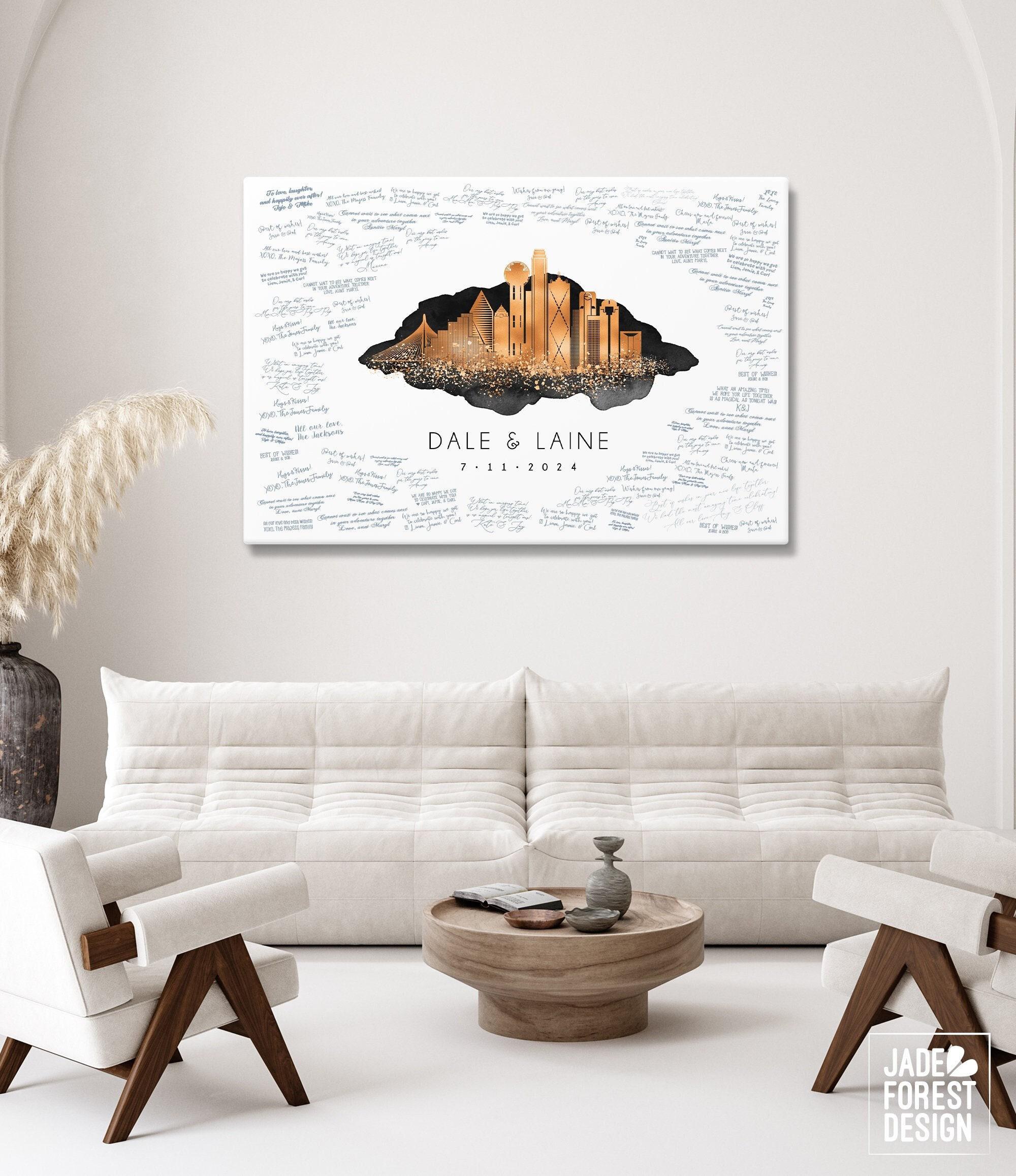 Dallas Skyline Guestbook, Copper and Black (Personalized Wedding Keepsake)
