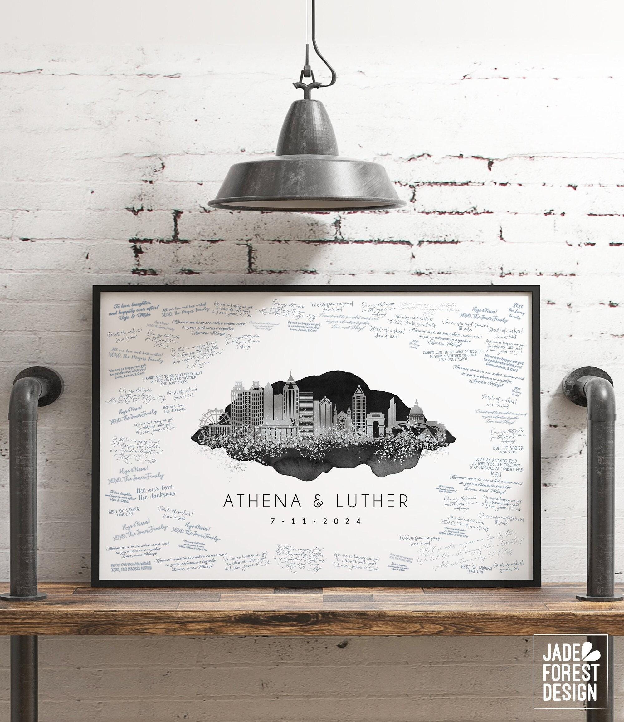 Thank you for choosing Jade Forest Design for your custom wedding decor. Created with love in the USA, we’re here to help make your special day unforgettable—just ask any questions via our Etsy shop messaging! Explore more unique skylines and guest books at https://www.etsy.com/shop/JadeForestDesign.