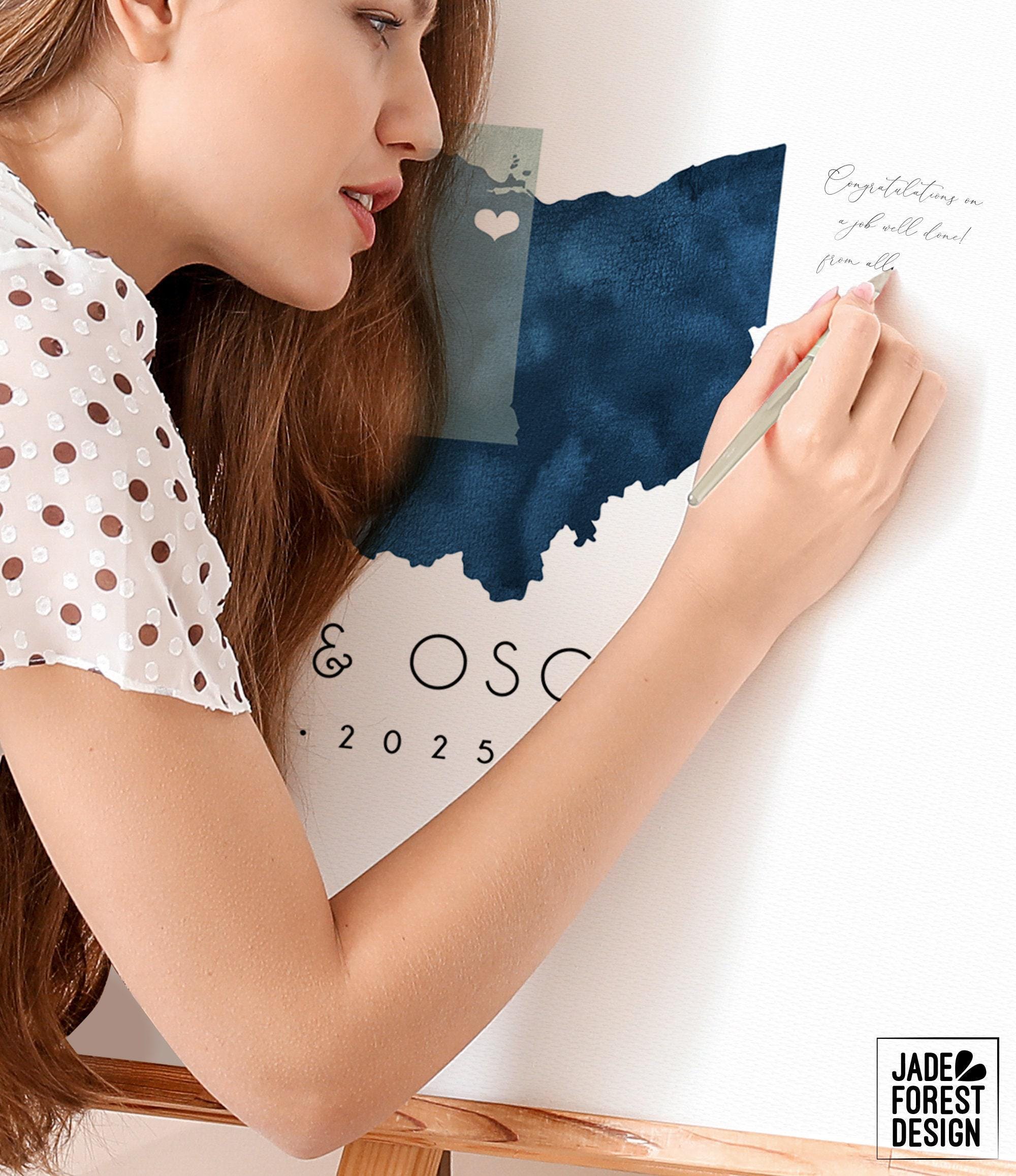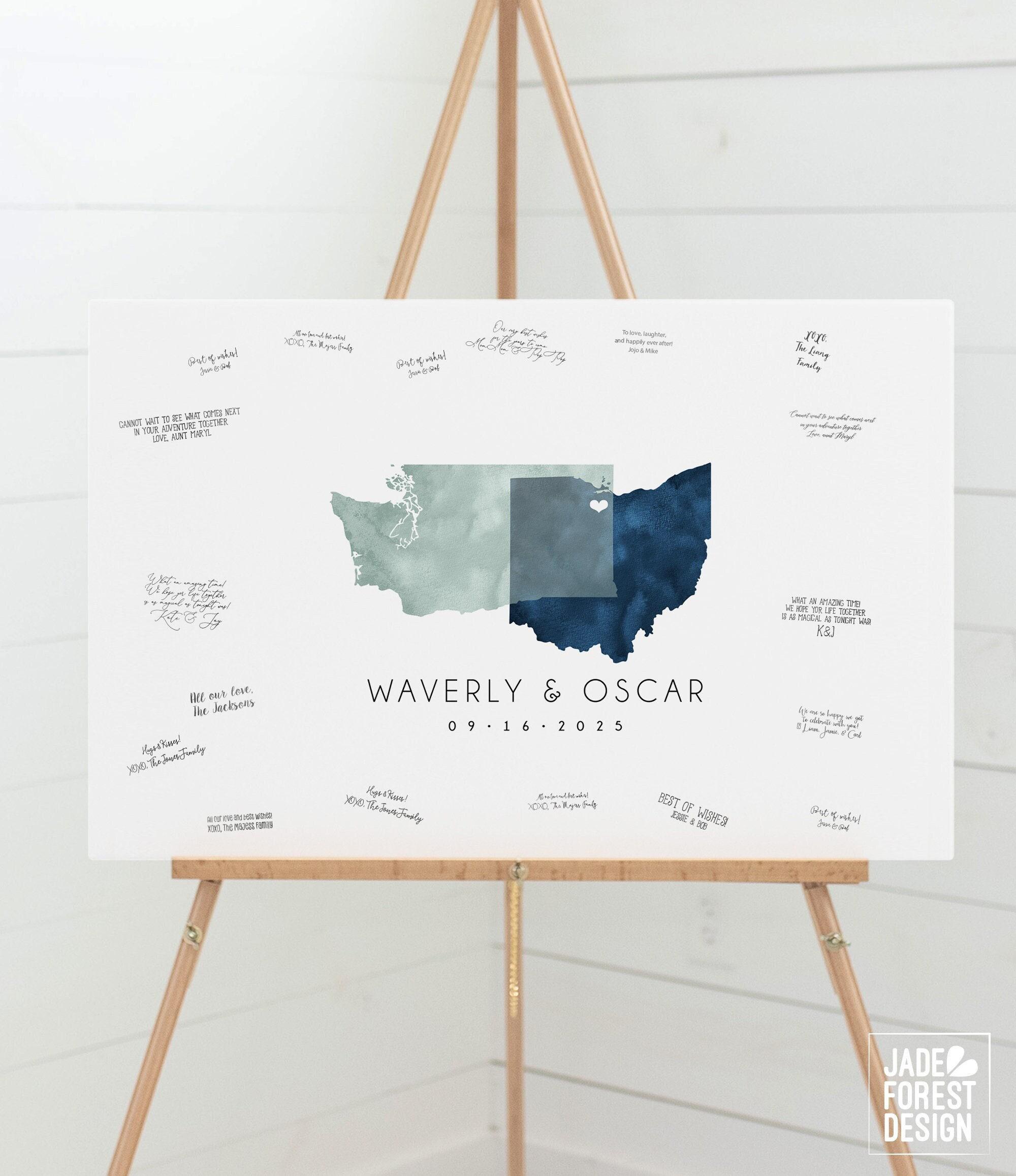 Celebrate your unique love story with this beautifully crafted wedding guest book alternative, featuring a watercolor guestbook map that overlaps your home states in a delicate dusty miller and navy palette. This custom guestbook map invites your guests to sign around the artwork, creating a heartfelt keepsake that captures the essence of your journey together. Perfect for couples seeking a meaningful and artistic wedding must-have, this piece blends personalization with timeless charm.