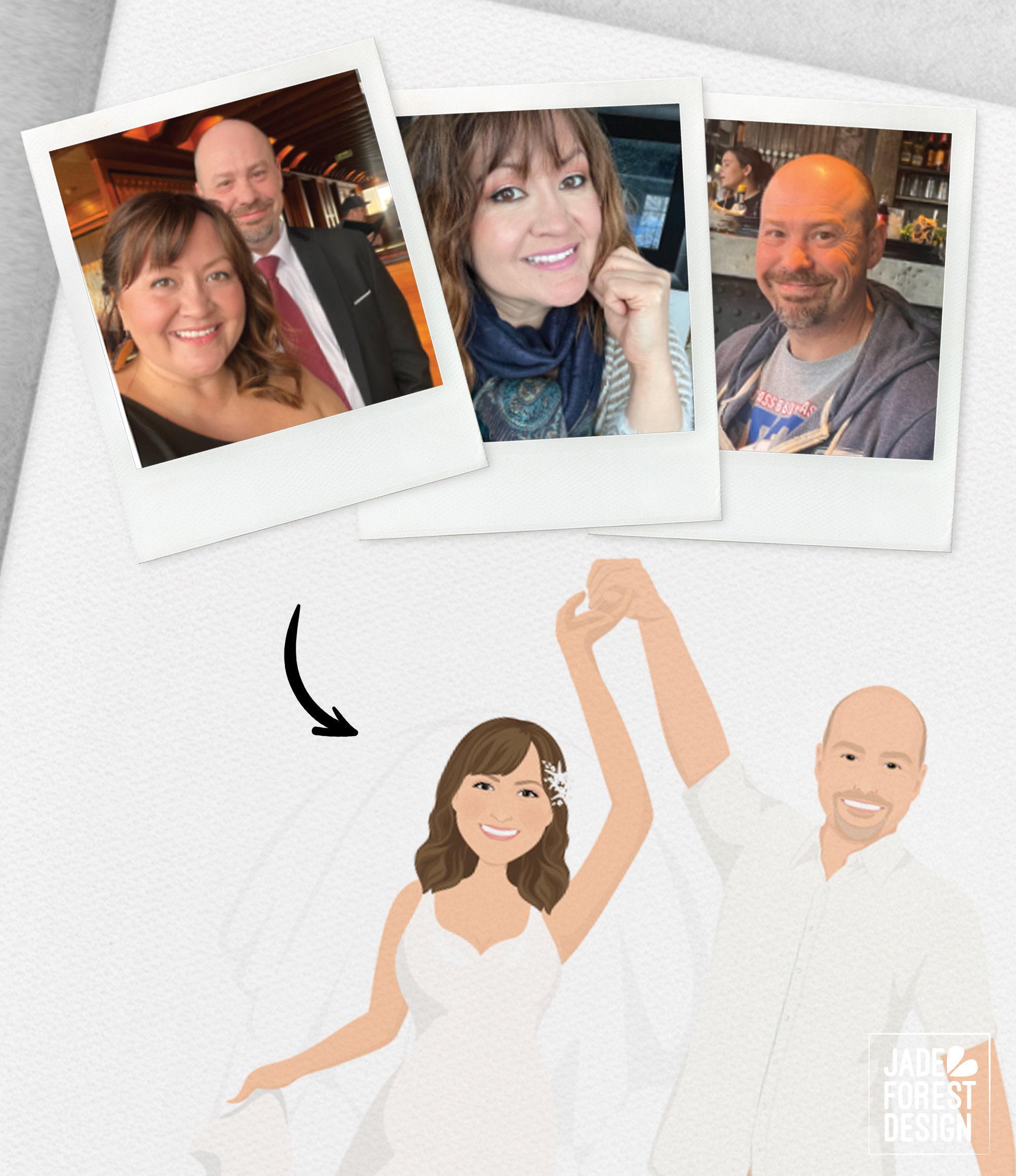 - ✅ Hand-drawn cartoon portrait customized from your photos, including hairstyles, clothing, accessories, and pets