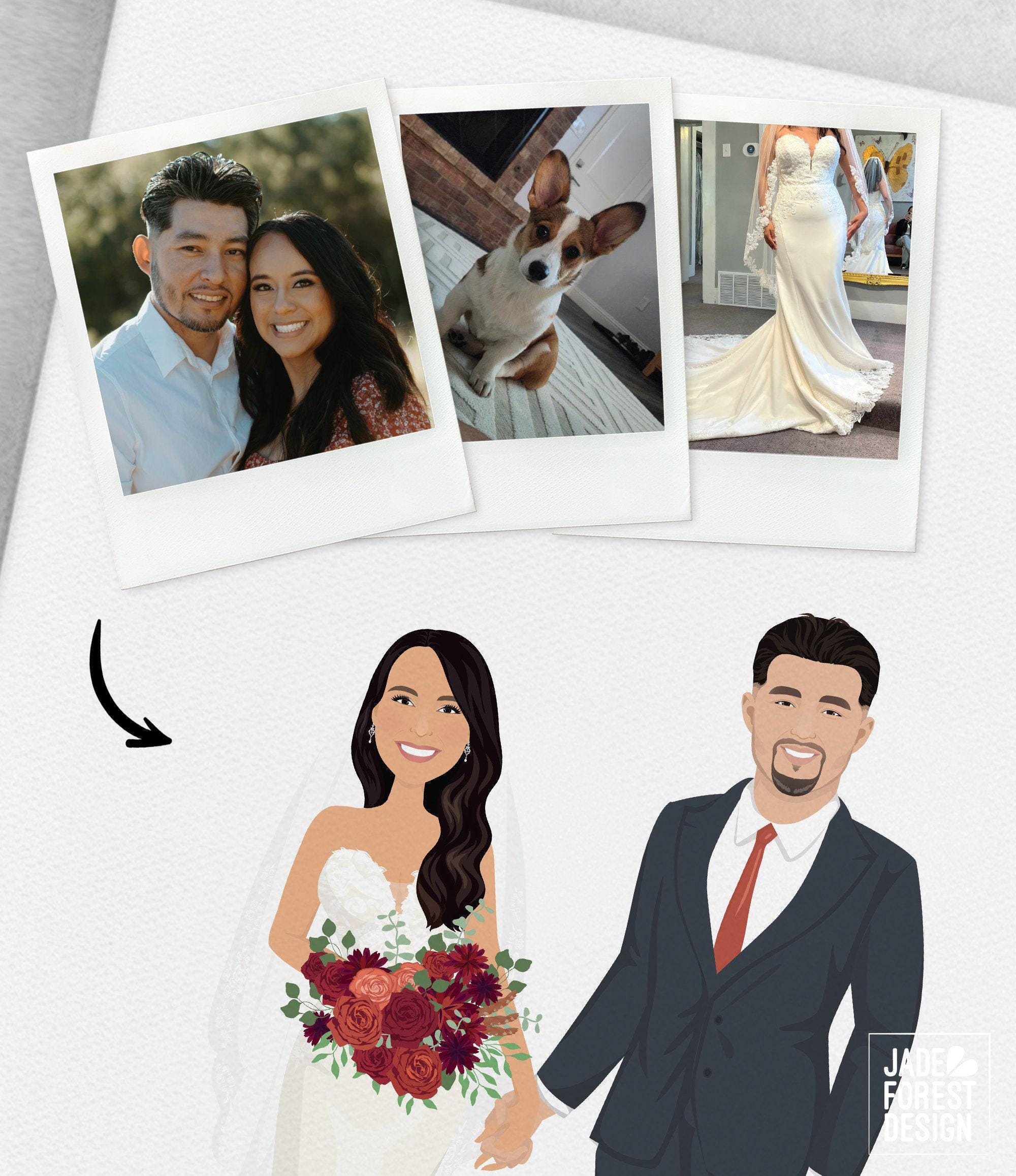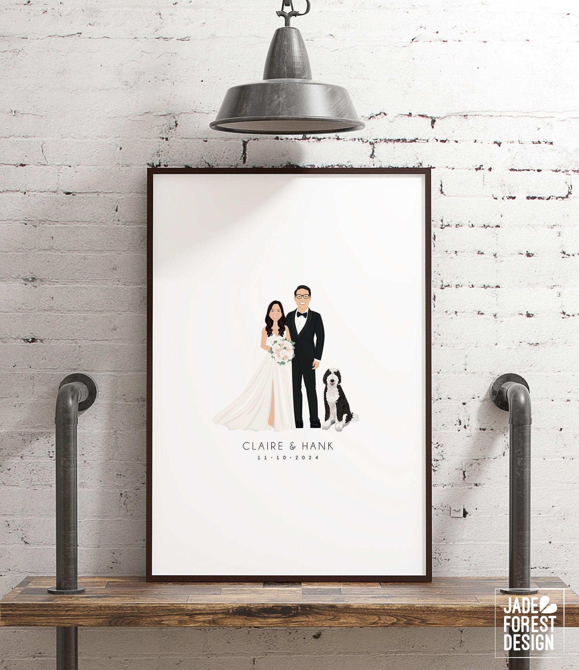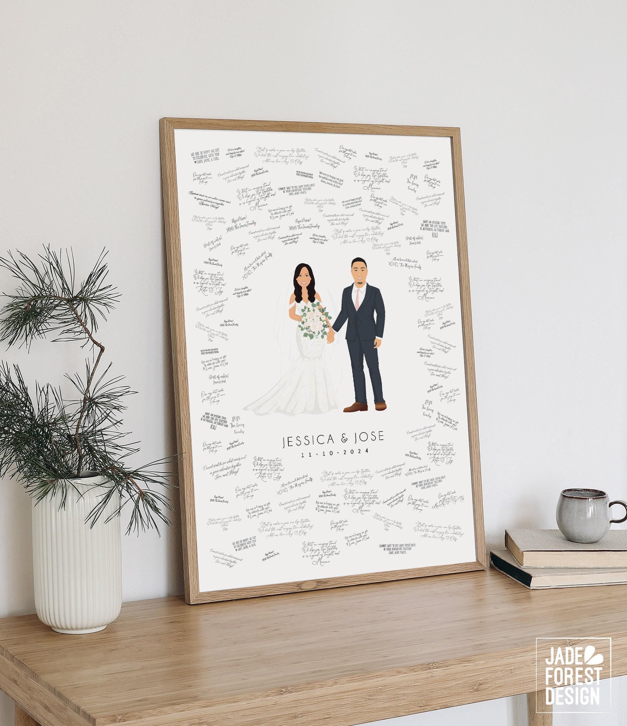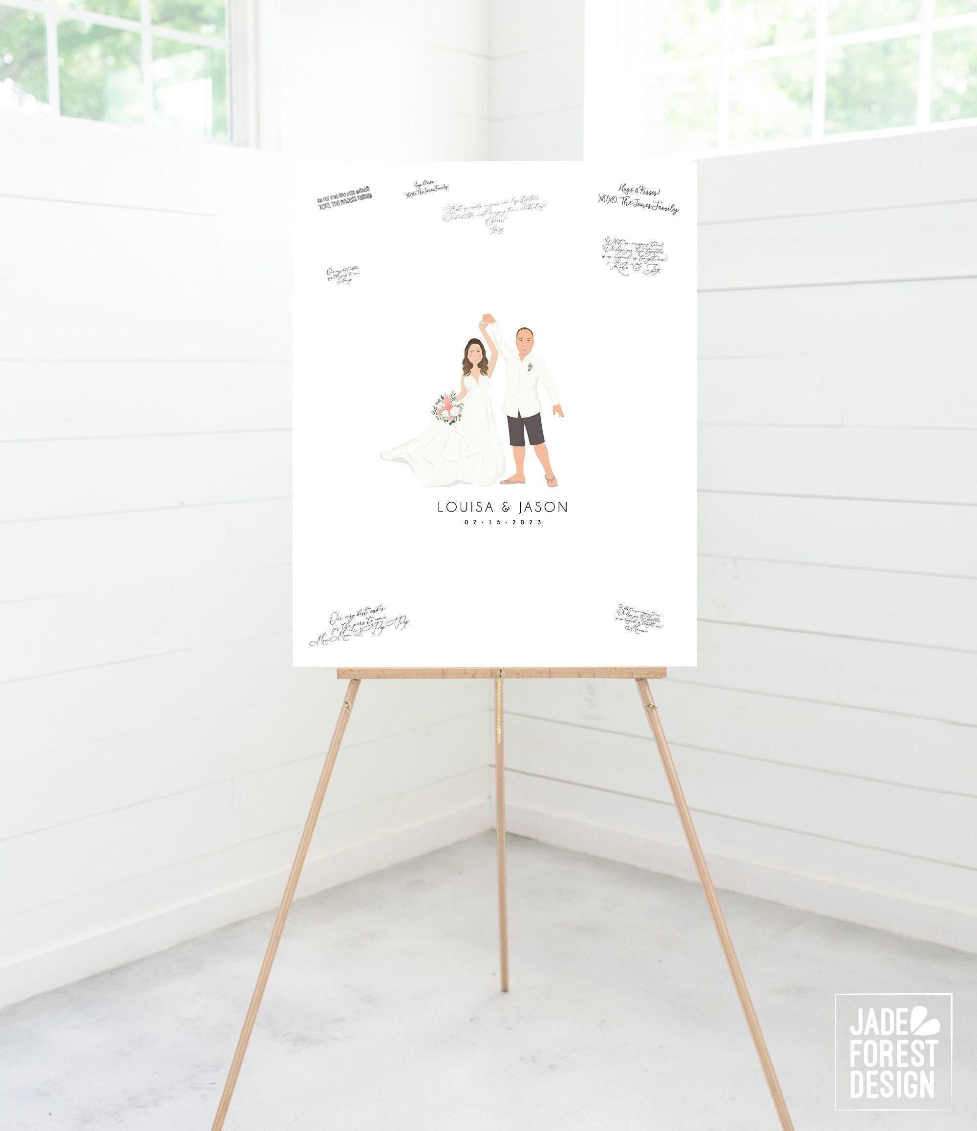 Celebrate your special day with a unique wedding guest book alternative that your guests will truly enjoy signing. This custom portrait guest book canvas features a charming cartoon illustration of the happy couple, personalized to include your likeness, pets, and favorite details. Designed as a whimsical keepsake, this personalized couple dancing art turns your memories into a joyful work of art that will brighten your home for years.