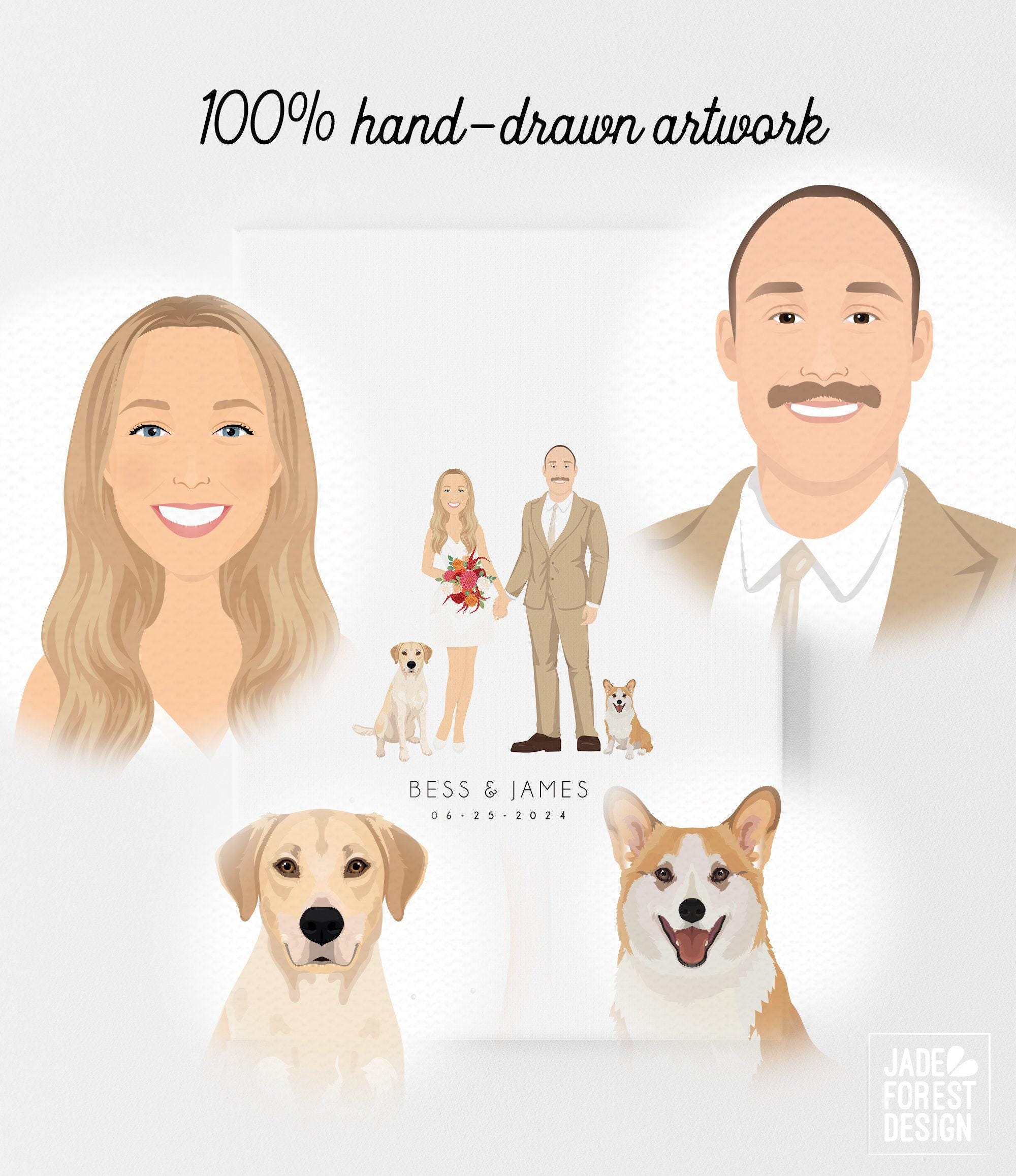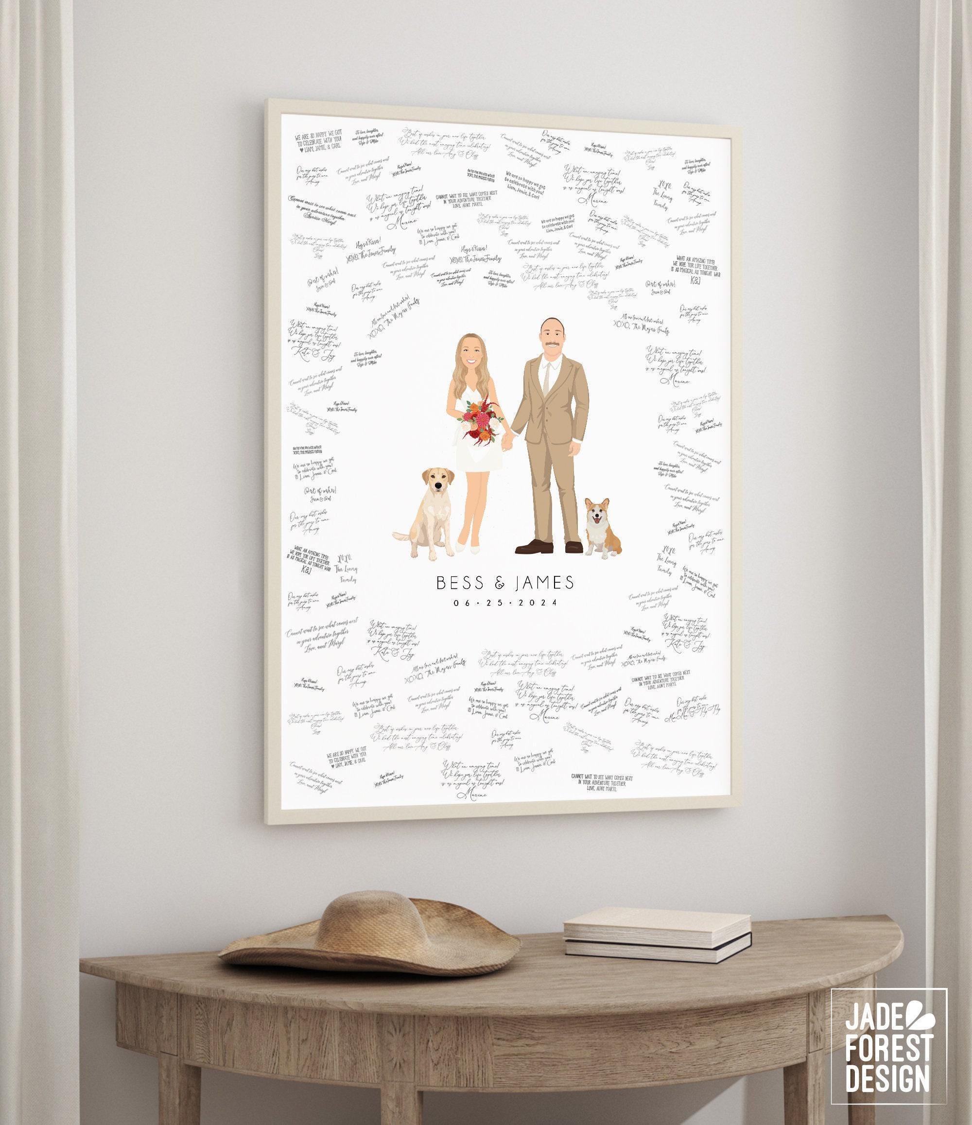 Celebrate your special day with a unique wedding guest book alternative that your guests will truly enjoy signing. This custom portrait guest book canvas features a charming cartoon illustration of the happy couple, personalized to include your likeness, pets, and favorite details. Designed as a whimsical keepsake, this personalized couple dancing art turns your memories into a joyful work of art that will brighten your home for years.