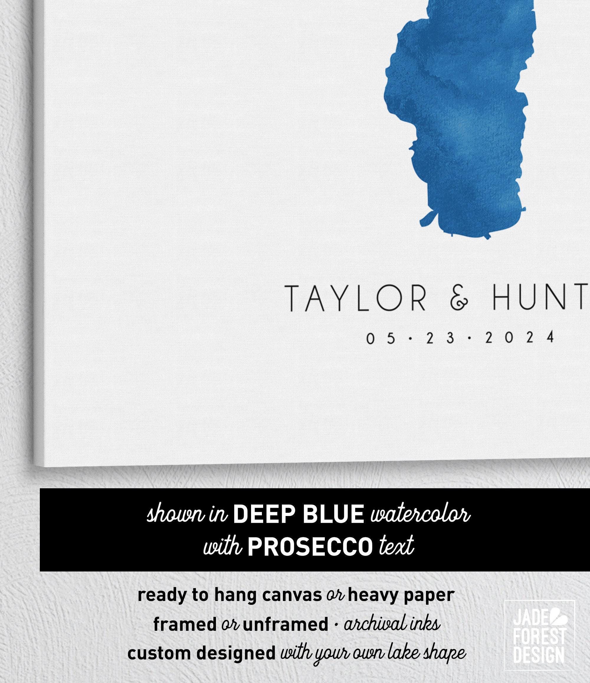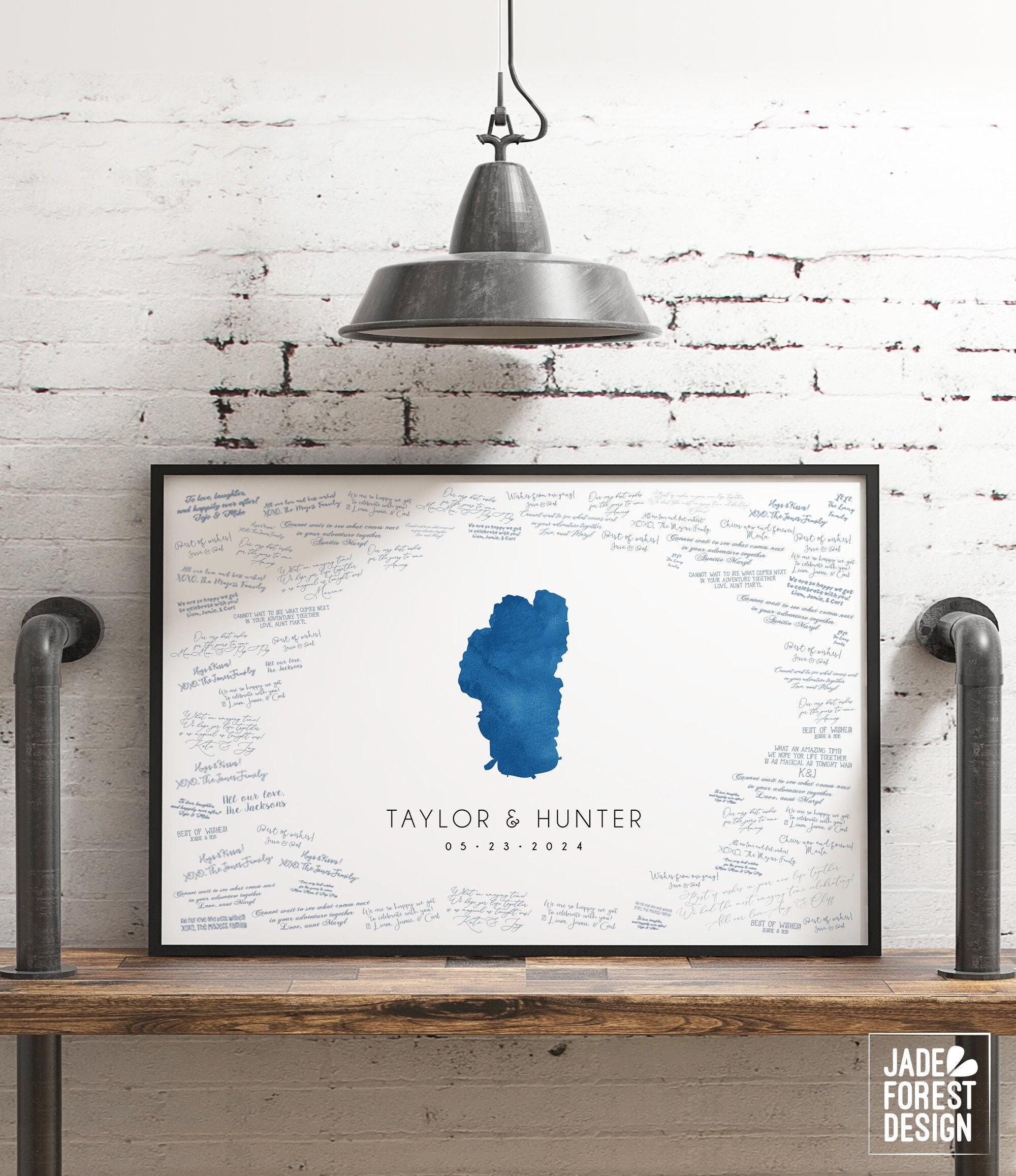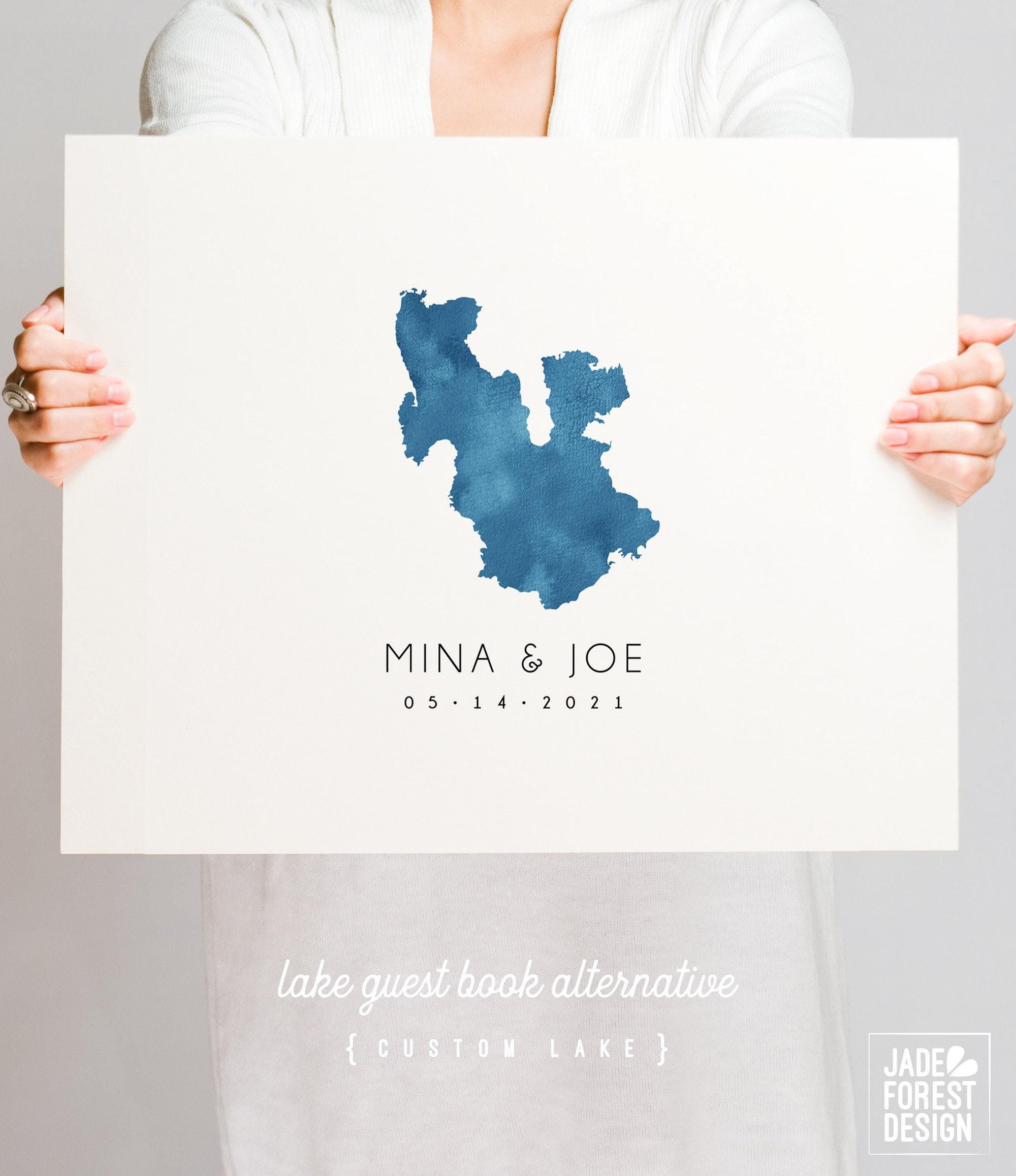 Celebrate your lakeside wedding with a unique guest book alternative that captures the beauty of your favorite lake in deep blue watercolor art. This personalized lake map guest book blends artistry and sentiment, making it a cherished keepsake for your special day. Designed with care, this custom lake canvas invites guests to leave heartfelt messages around a meaningful map, perfect for Lake Tahoe weddings or any lakeside celebration.