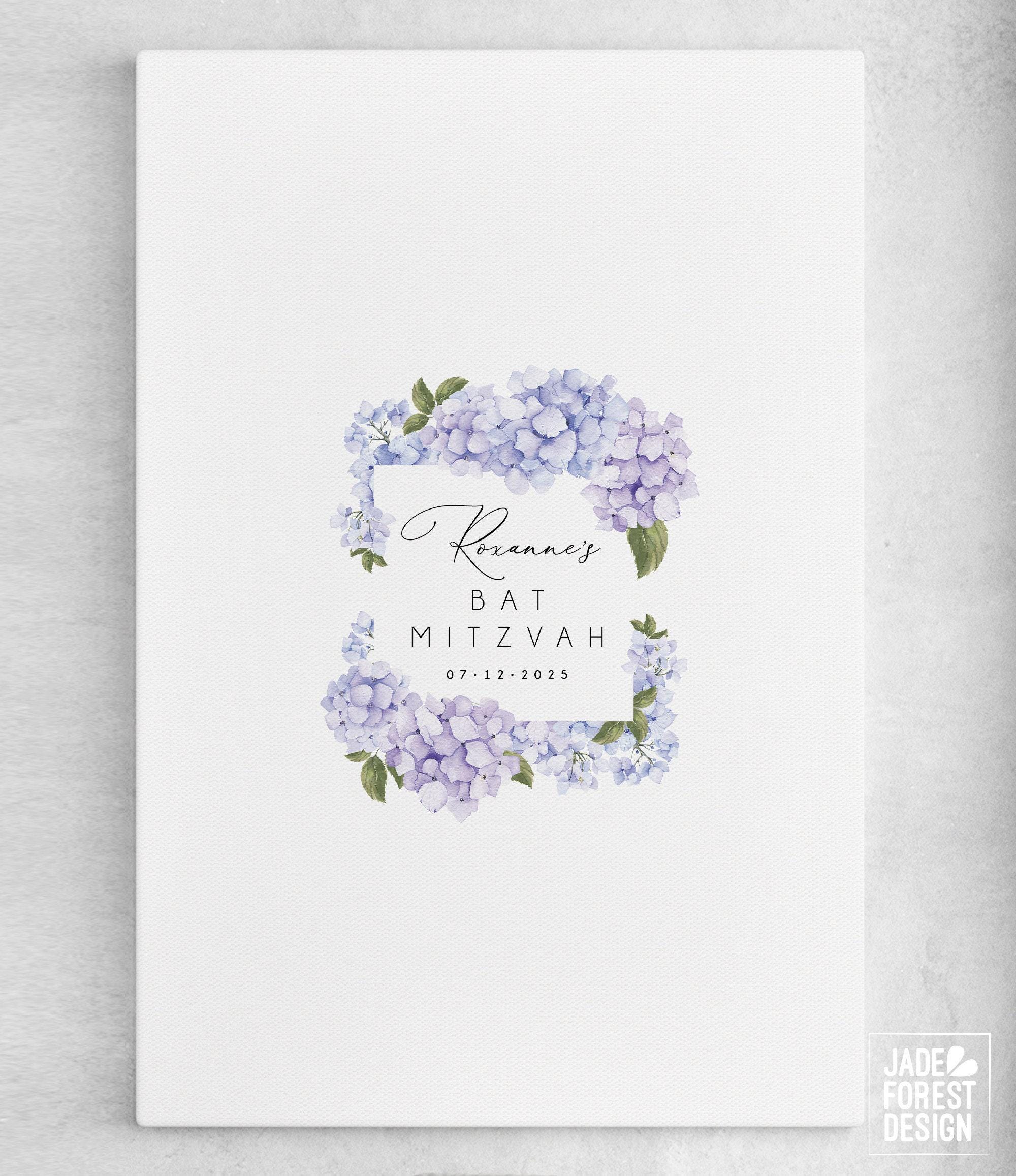 Celebrate your special day with a custom hydrangea guest book, thoughtfully designed to blend elegance and tradition. This floral bat mitzvah keepsake offers a unique canvas to sign, creating a cherished memory framed in beautiful hydrangea decor. Perfect for Jewish celebrations, it transforms from a welcoming sign into a heartfelt memento that guests will love to personalize.