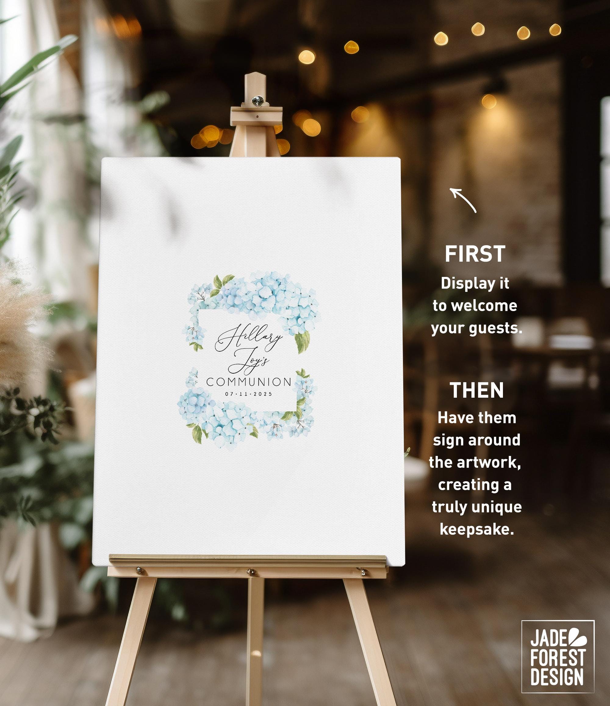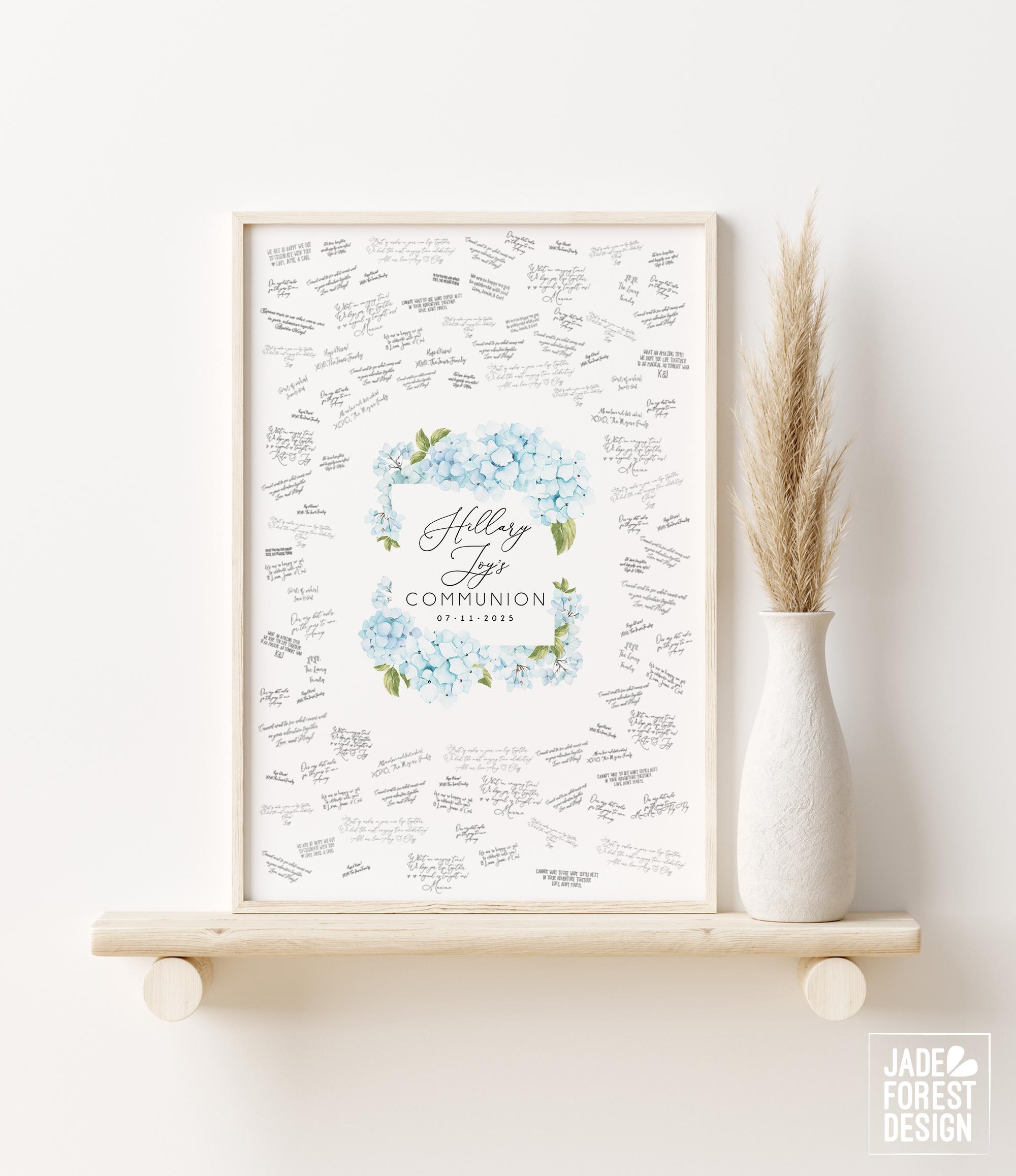 Celebrate your special occasion with a beautifully crafted hydrangea guest book that serves as both a celebration sign and a cherished keepsake. This unique party guest book features a delicate floral frame designed to highlight your personalized details, making it an unforgettable addition to any holy communion or special event. Thoughtfully created to be both a stunning event decor piece and a lasting memory, it’s perfect for commemorating his communion or gifting to a loved one.