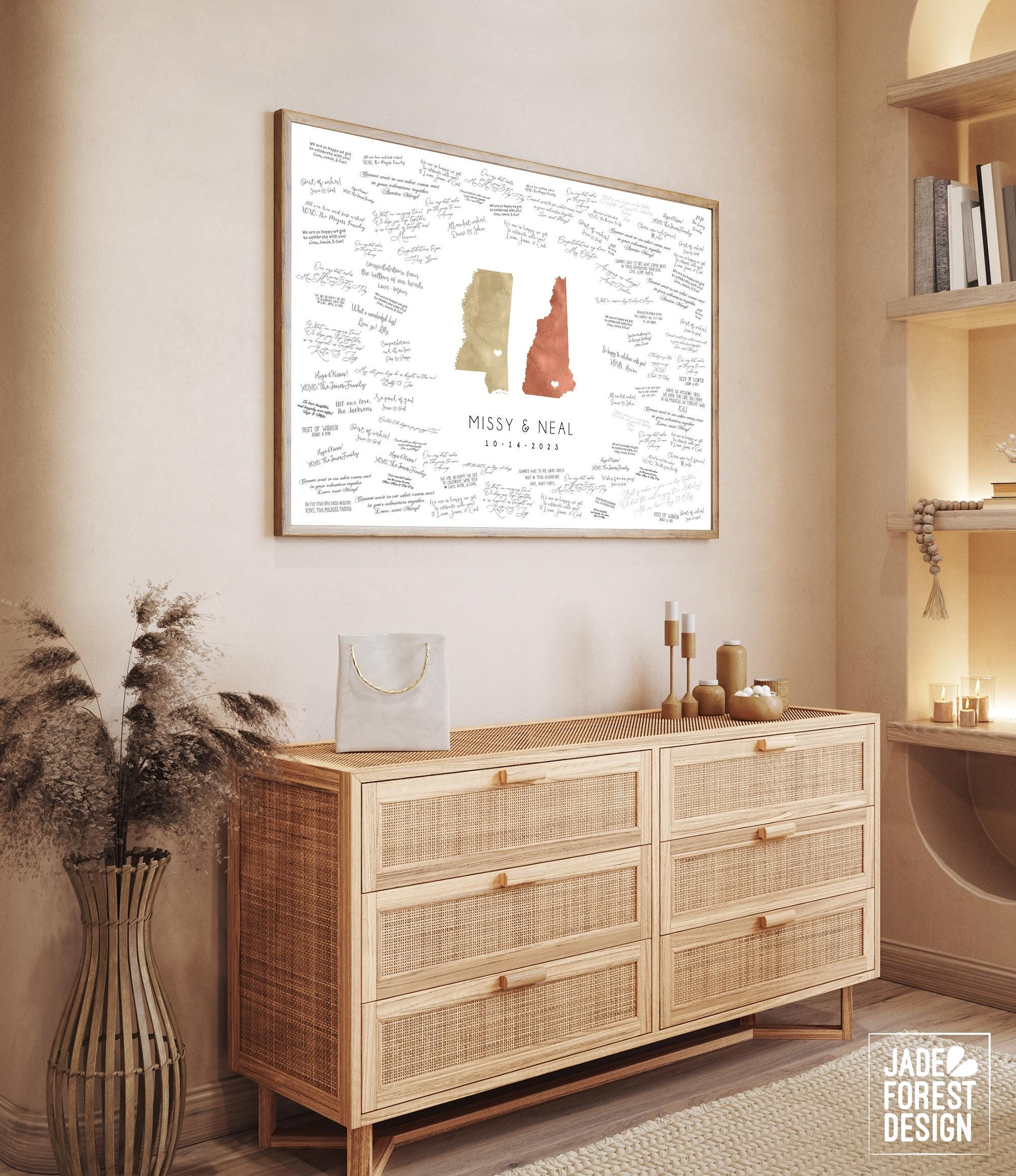 - ✅ Multiple size options from 11"x14" (up to 50 signatures) to 24"x36" (up to 250 signatures) to fit your guest count