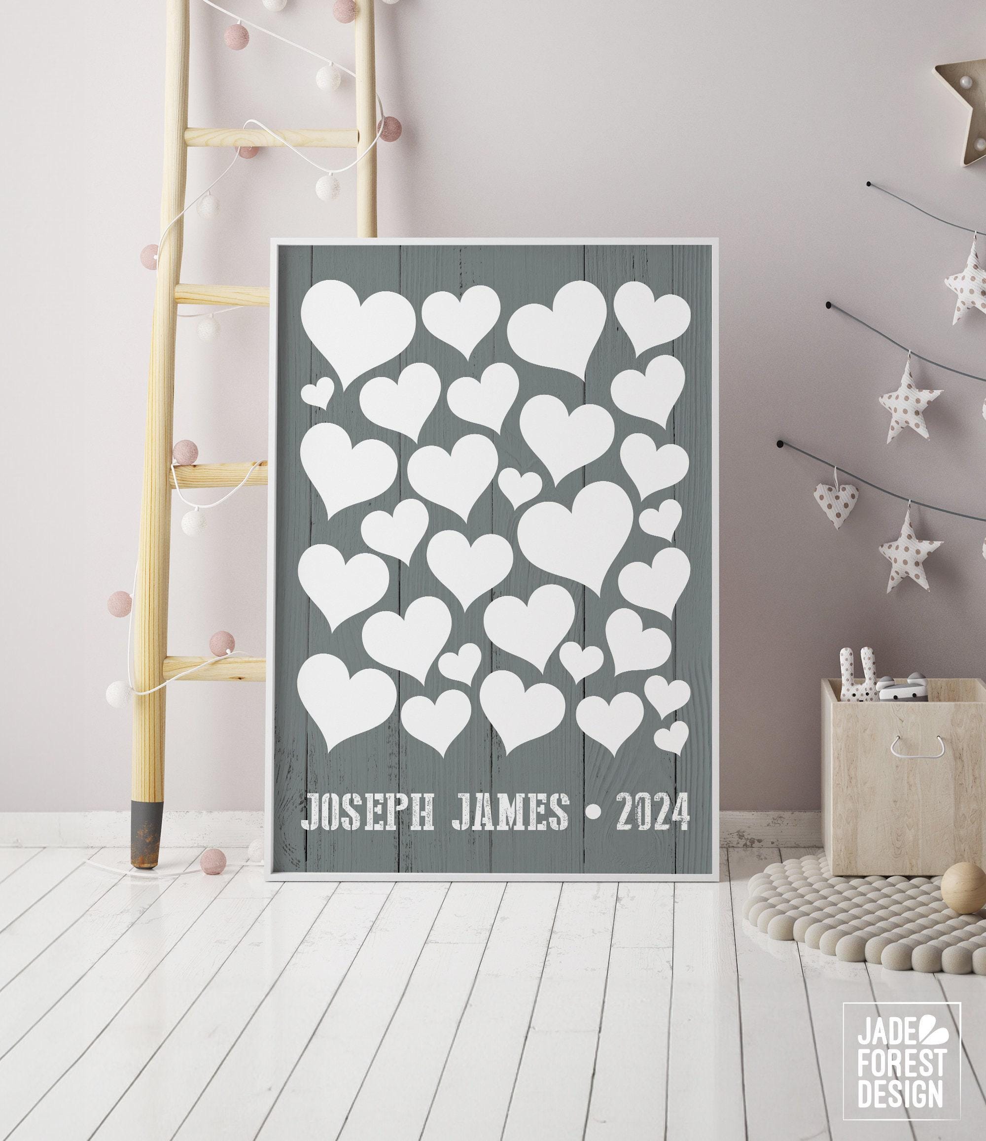 Celebrate your upcoming baby shower with a charming woodland-themed guest book alternative that transforms memories into art. This personalized baby guest book canvas invites your loved ones to sign animal shapes, creating a unique keepsake that doubles as nursery wall decor. Thoughtfully designed with customization options in colors and fonts, this printable baby gift blends creativity and sentimentality for any mom to be.