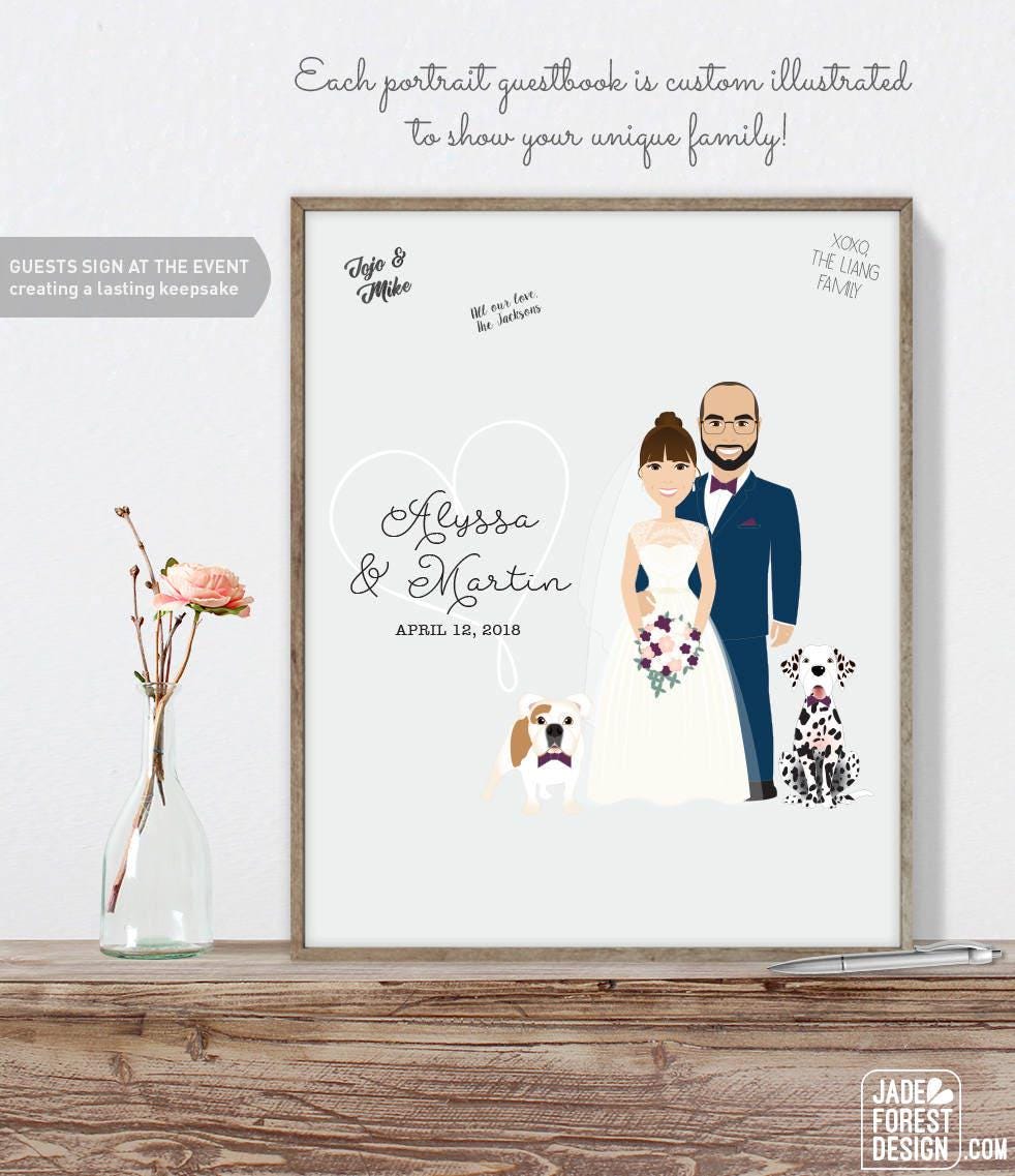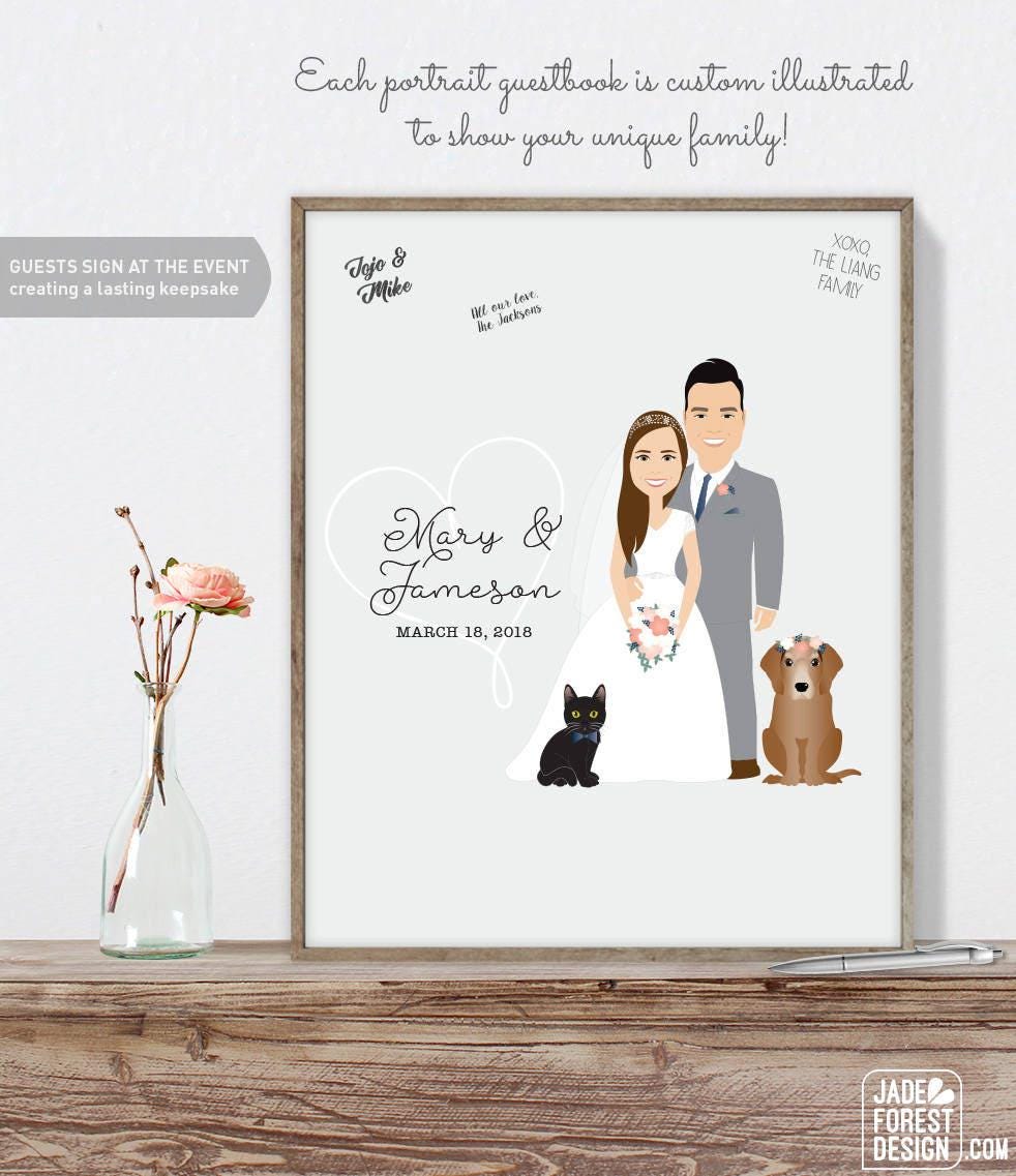 Celebrate your special day with a unique wedding guest book that transforms your favorite photo into a charming cartoon keepsake. This custom couple portrait sign invites guests to leave heartfelt messages around a fun caricature gift, making it a delightful alternative to traditional guest books. Handcrafted with care, this personalized drawing captures your likeness perfectly, including pets and accessories, creating a treasured canvas framed print for years of memories.