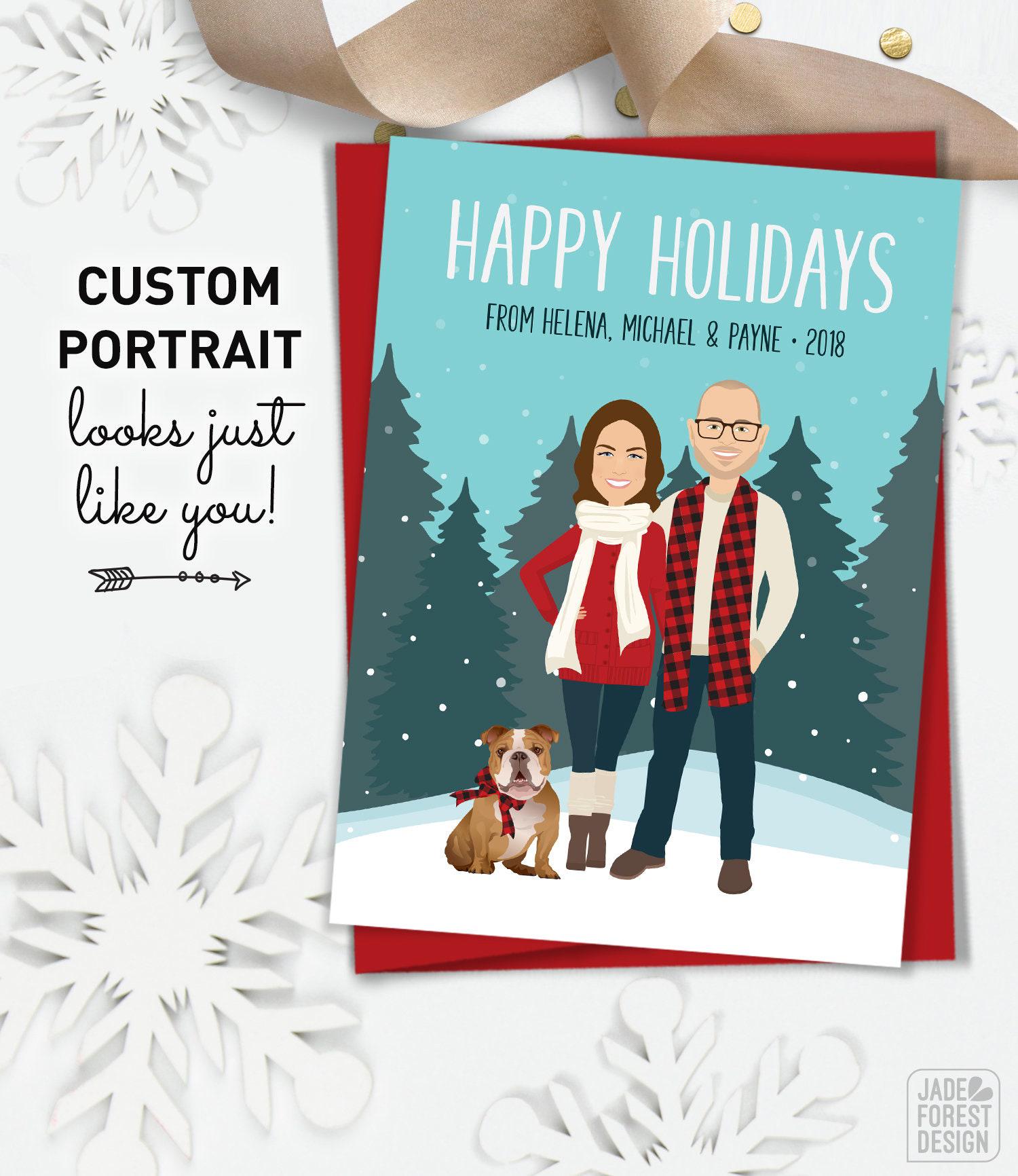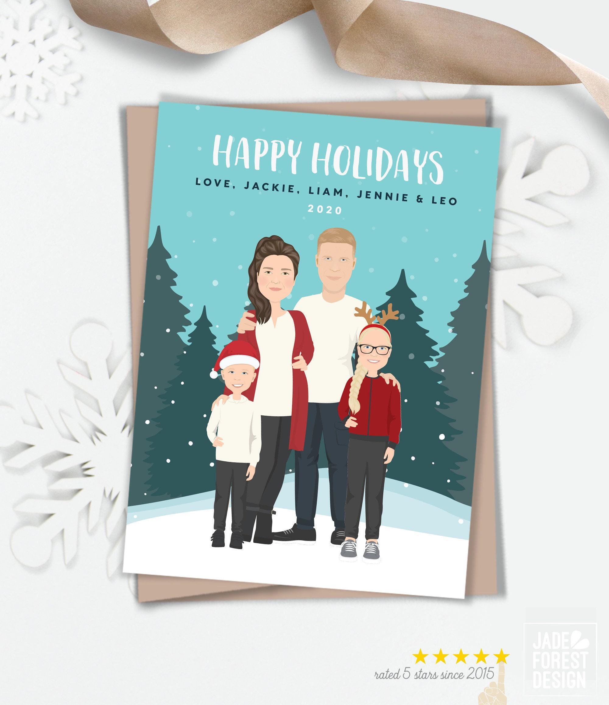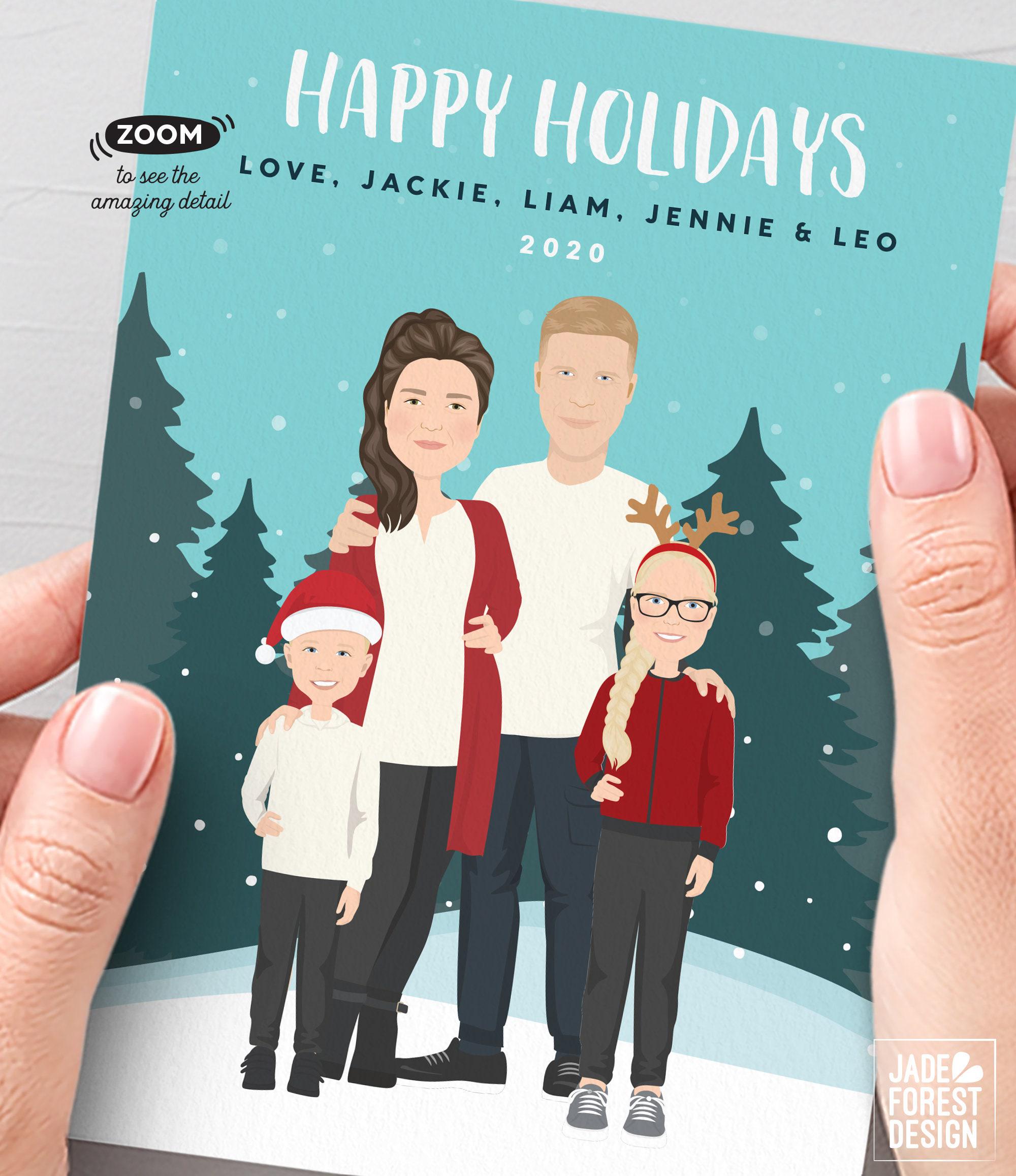 Celebrate the season with a truly unique holiday card that captures your family's spirit and personality. This custom cartoon portrait, crafted on premium 100% recycled paper, brings your loved ones and pets to life with charming details and vibrant colors. Perfect for whatever makes your family stand out, itβs a thoughtful option that spreads cheer to every mailbox.