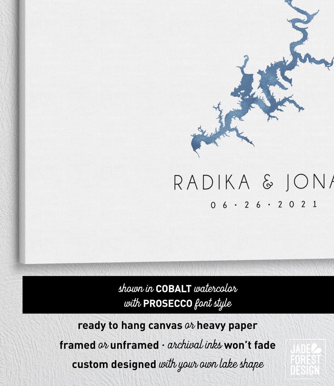 Celebrate your special day with a personalized lakes guest book that beautifully captures the essence of your favorite lake in stunning watercolor detail. This custom lake art piece, available as a framed guestbook, makes a unique bridal shower gift or wedding keepsake that guests will cherish for years to come. Featuring dusty blue cobalt tones and expert craftsmanship, it’s designed to blend elegance with heartfelt memories.
