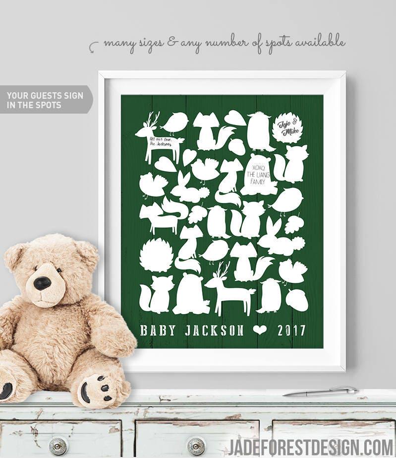 Celebrate your little one's arrival with a charming woodland baby shower guest book that doubles as a custom keepsake. This printable design invites guests to sign animal-shaped spots, creating a heartfelt memento filled with love and well-wishes. Perfect for a newborn celebration, this unique alternative to traditional guest books captures memories in a playful, personalized way.