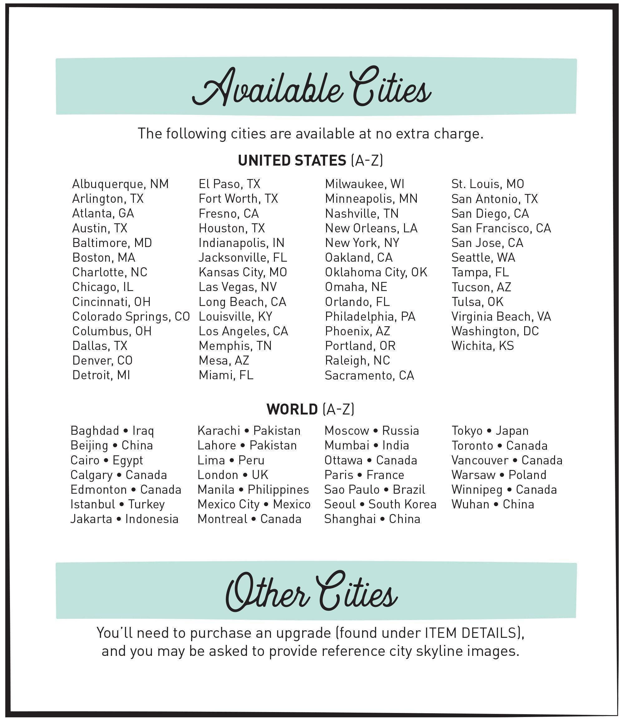 - ✅ Personalized with your names, wedding date, and choice of city skyline from the available list