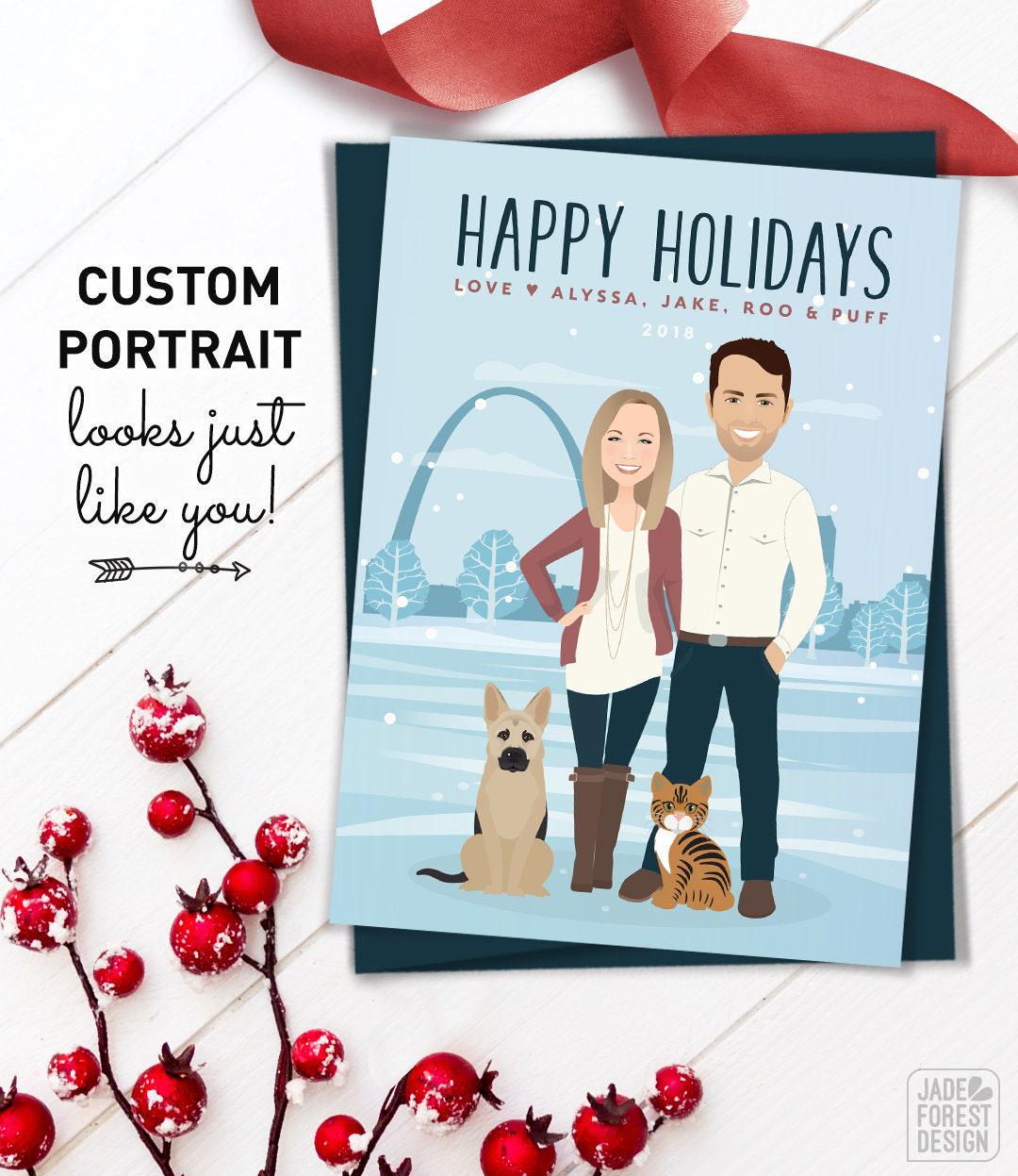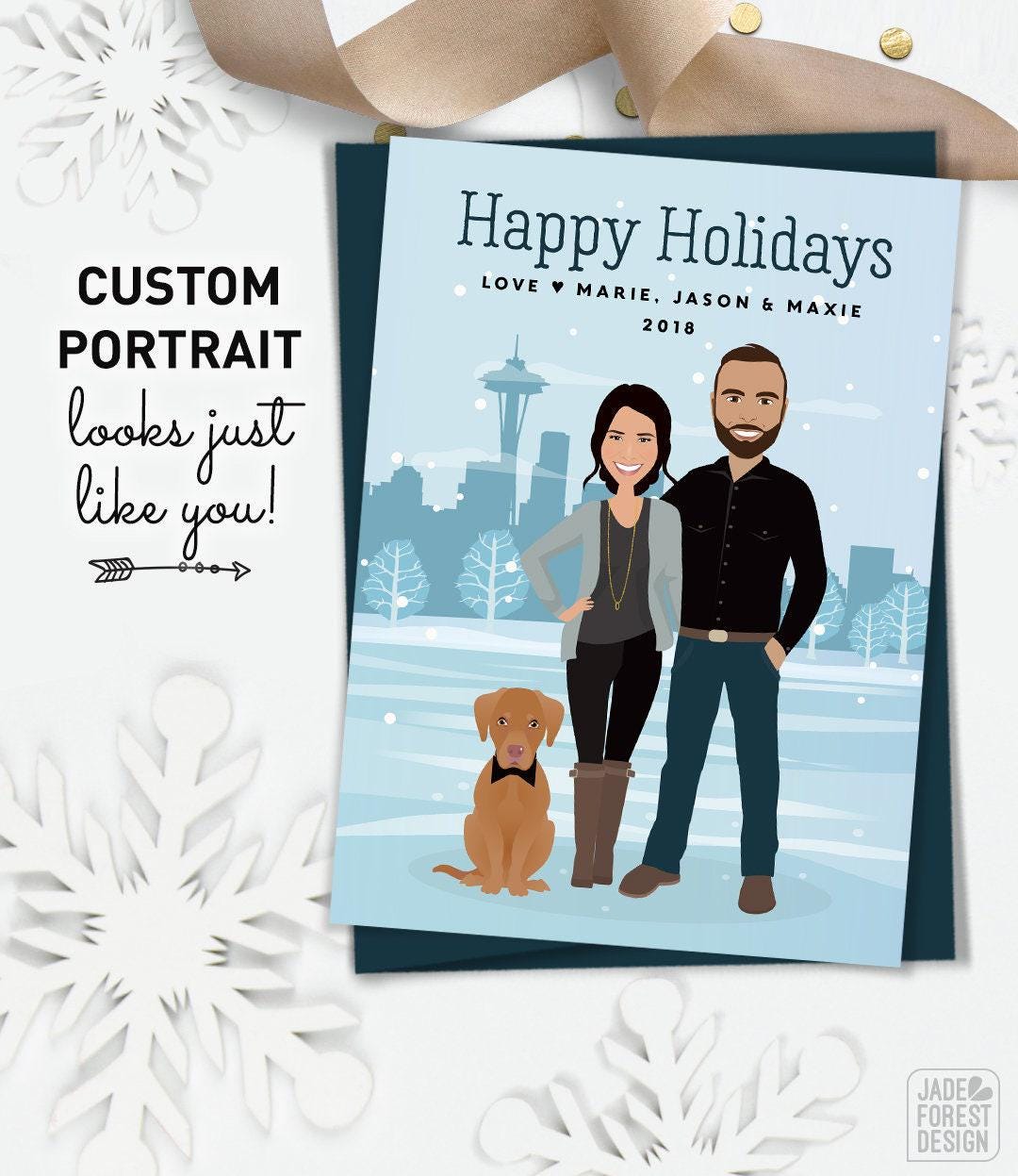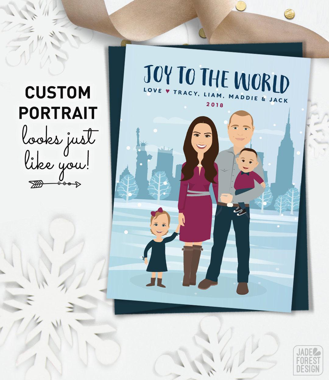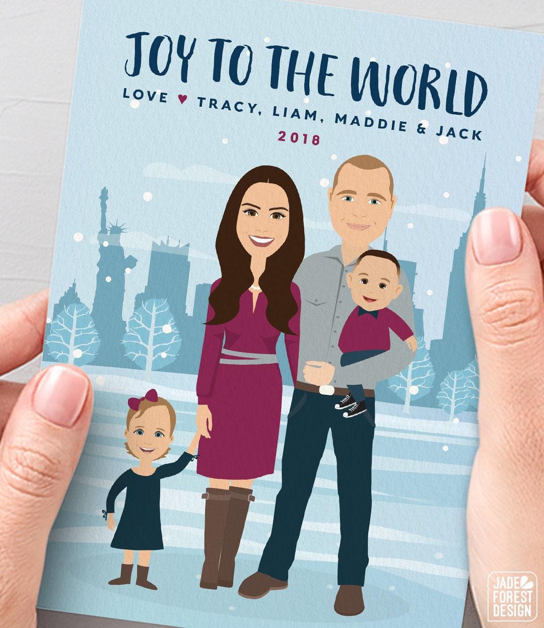 Holiday Family Portrait Cards, Custom Illustrated (5x7, NYC Theme)
