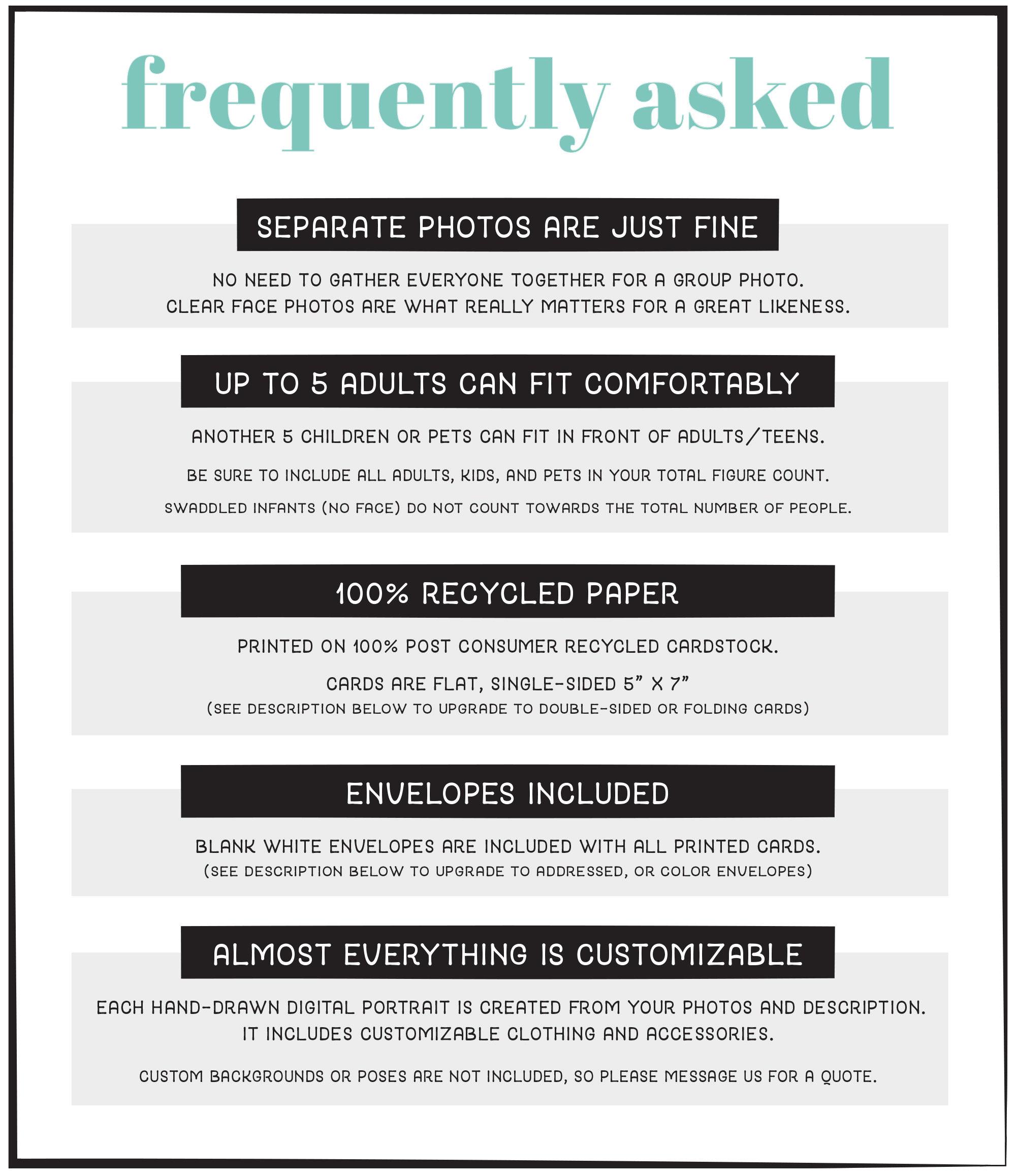 βœ“ PHOTOS ➀ There's no need for everyone to be together in the photo for this design, separate photos for each person are just fine. Quality face photos are what matters for a good likeness.