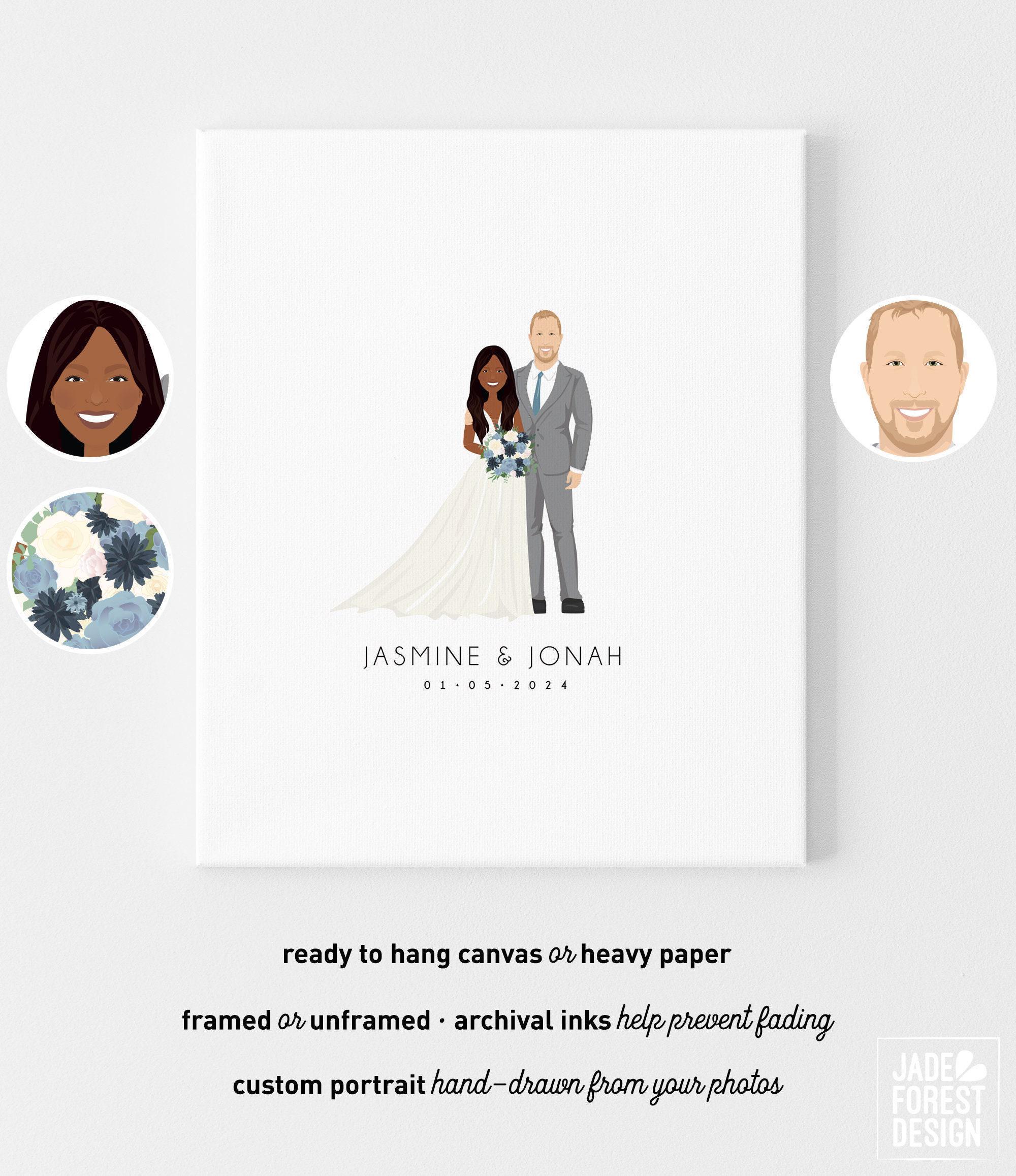 Custom Wedding Guest Book Alternative: Personalized Couple Portrait Canvas