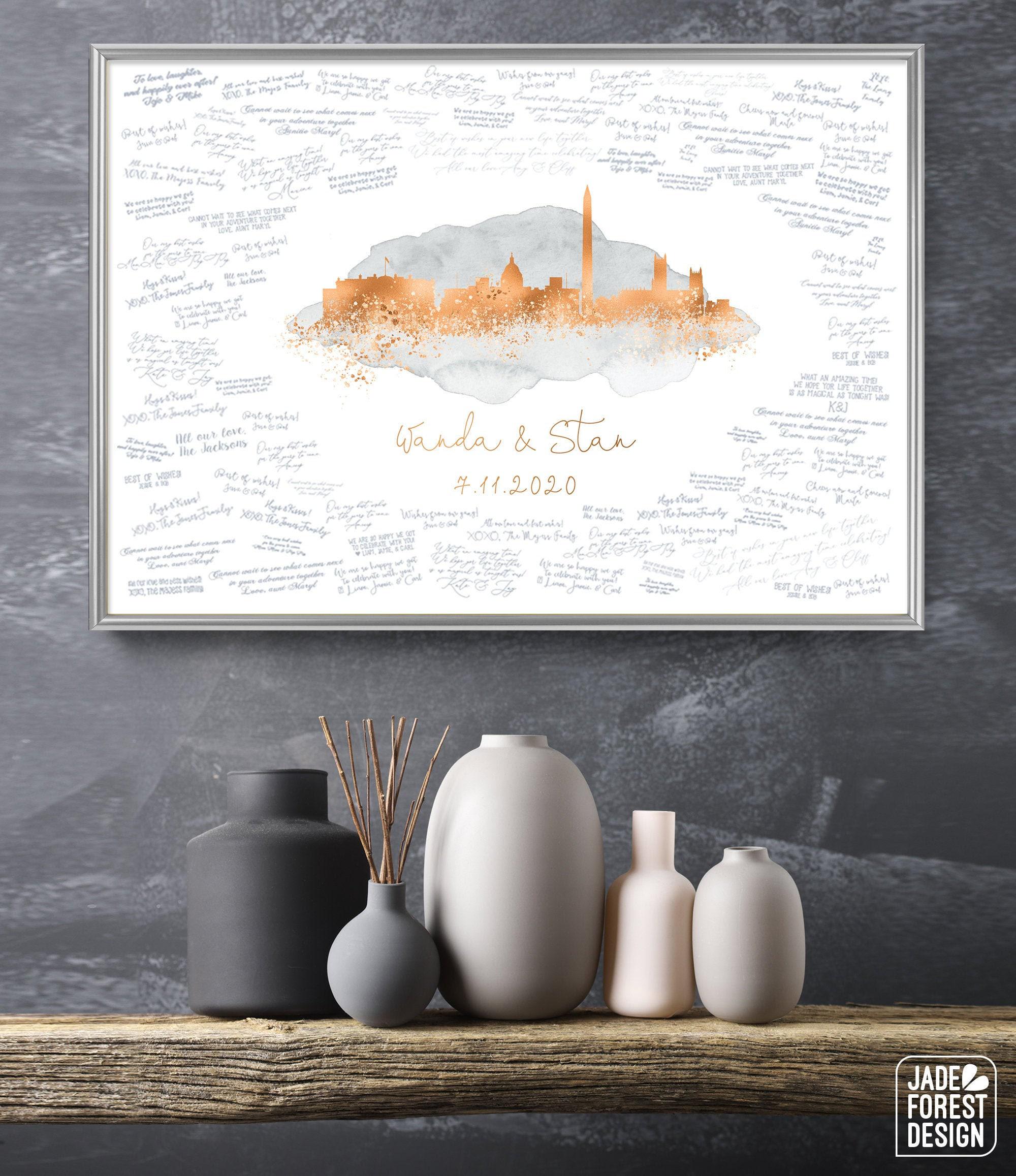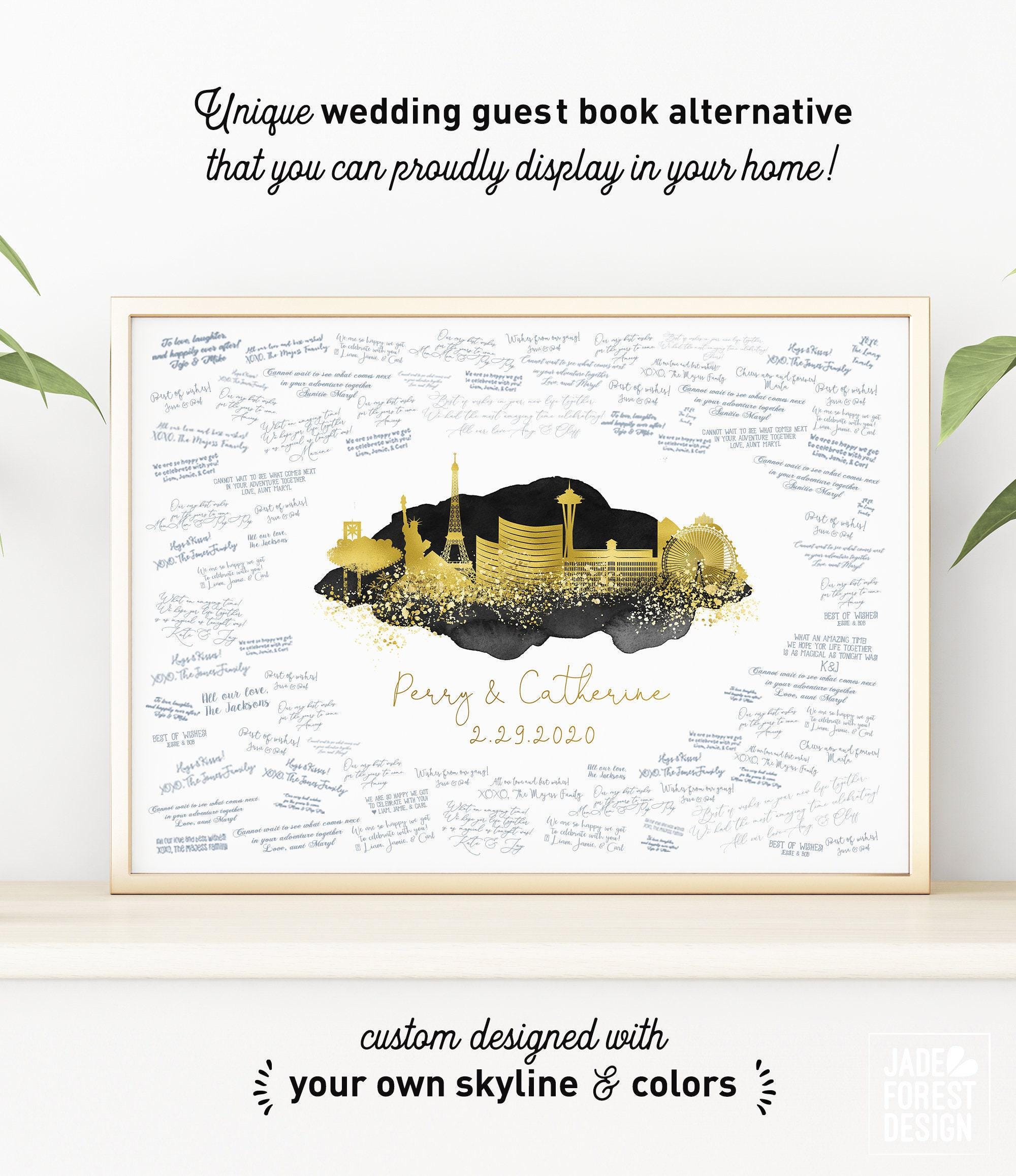 Are you in love with the city you're getting married in? With the one you're moving to? Or maybe where you're from? Celebrate your love affair with our CUSTOM SKYLINE GUEST BOOK. It features your city skyline in a stunning faux metallic, enveloped with romantic watercolor. The artwork will be personalized with your names and wedding date, your choice of colors, and skyline (see list in Photos for available cities).