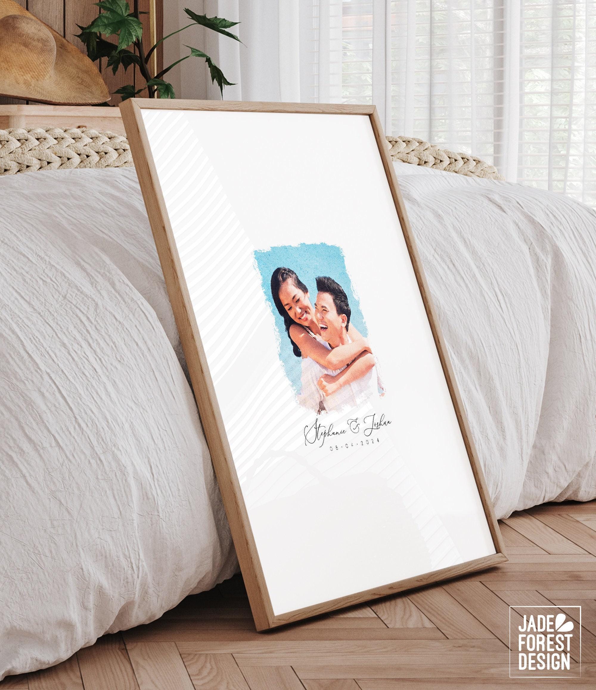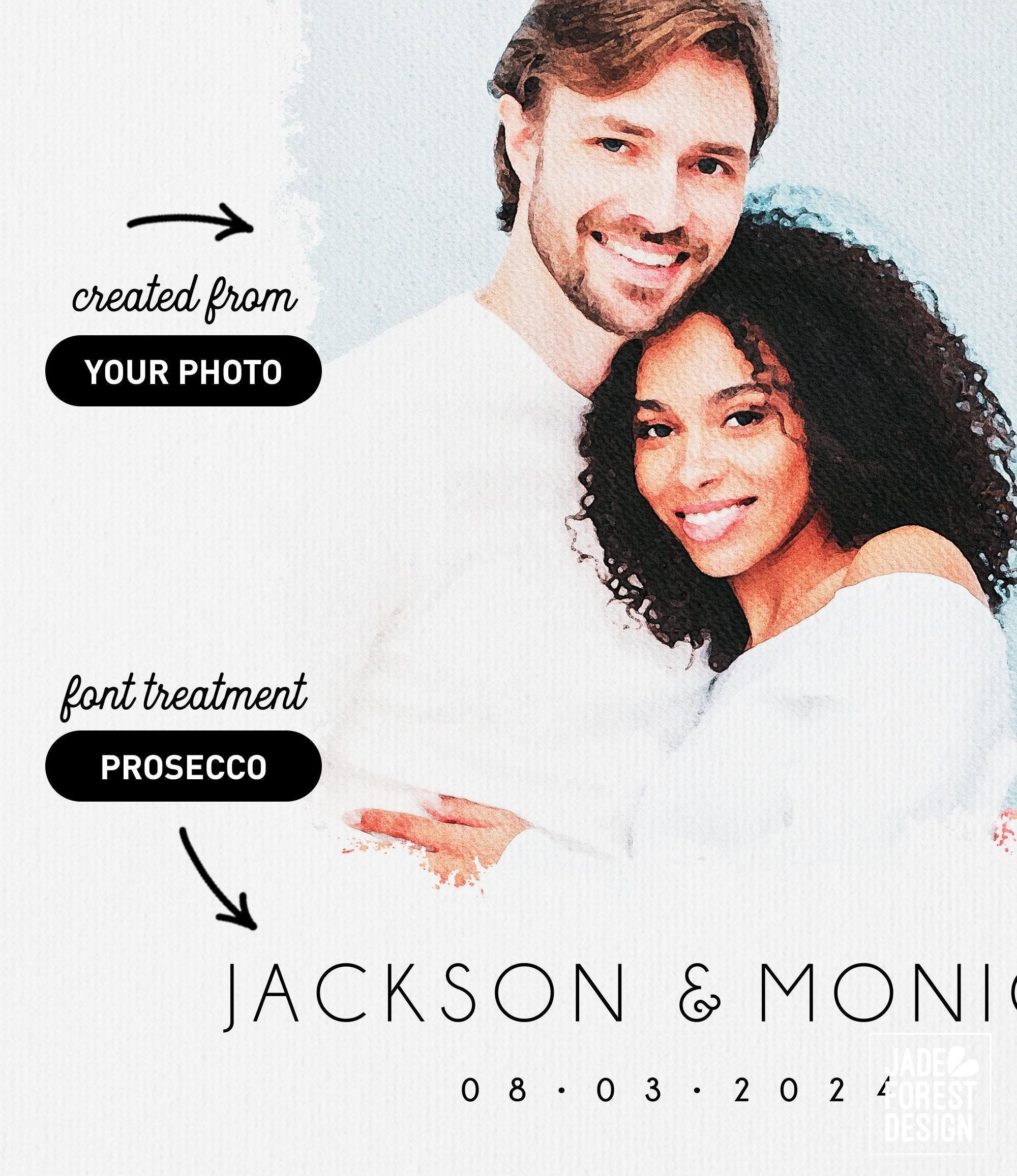 - ✅ Custom artwork created from your chosen photo, with your names and wedding date
