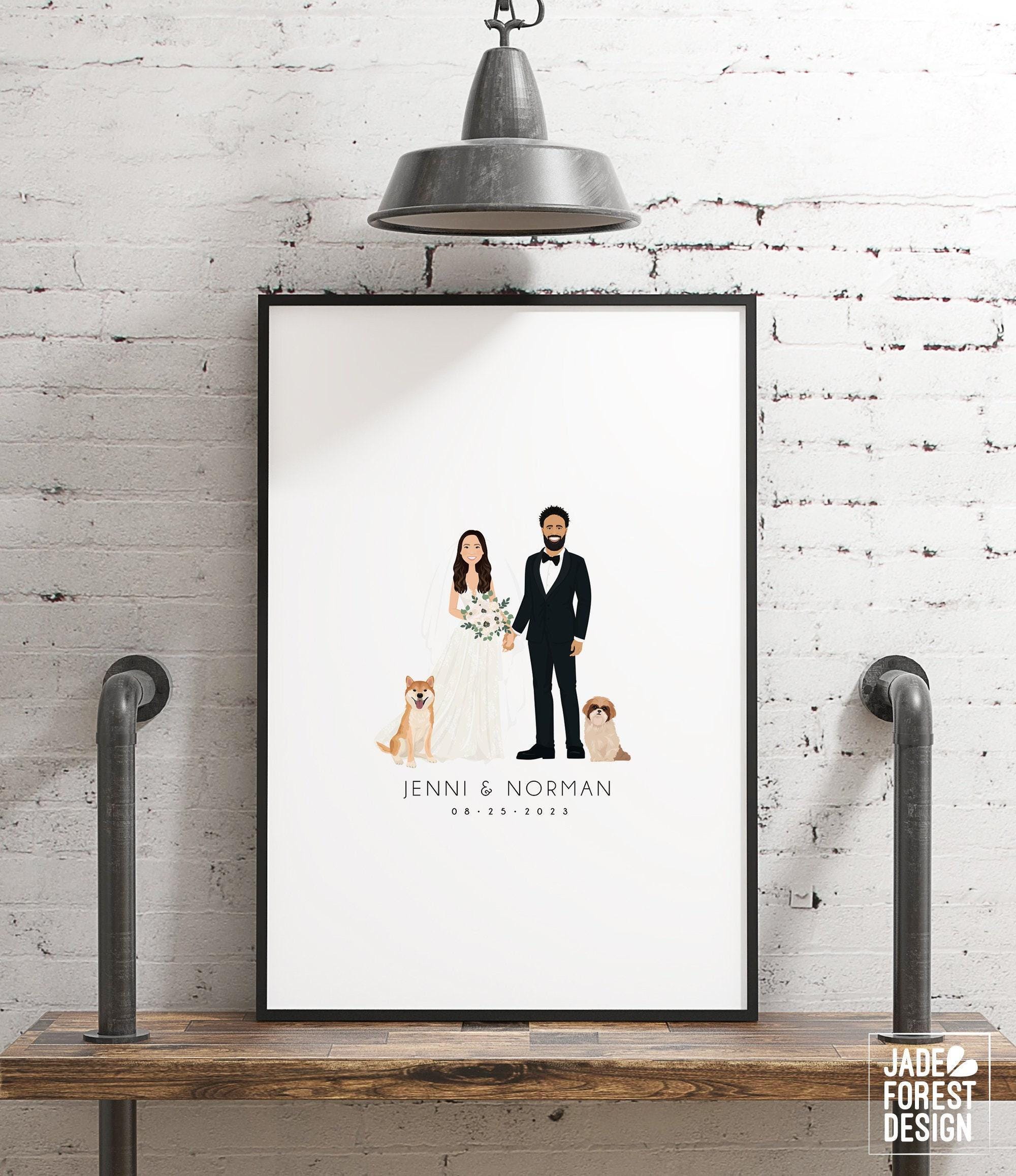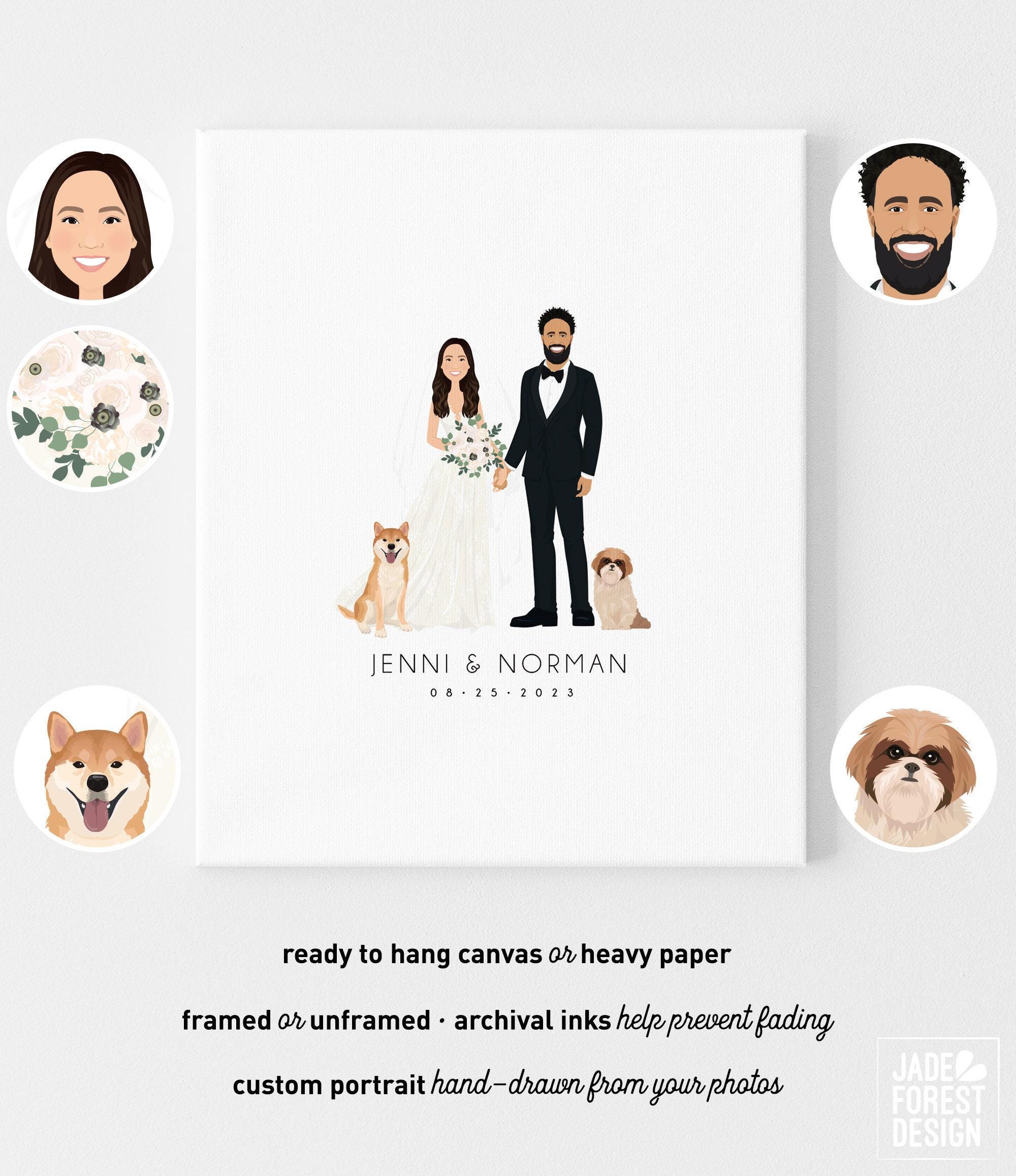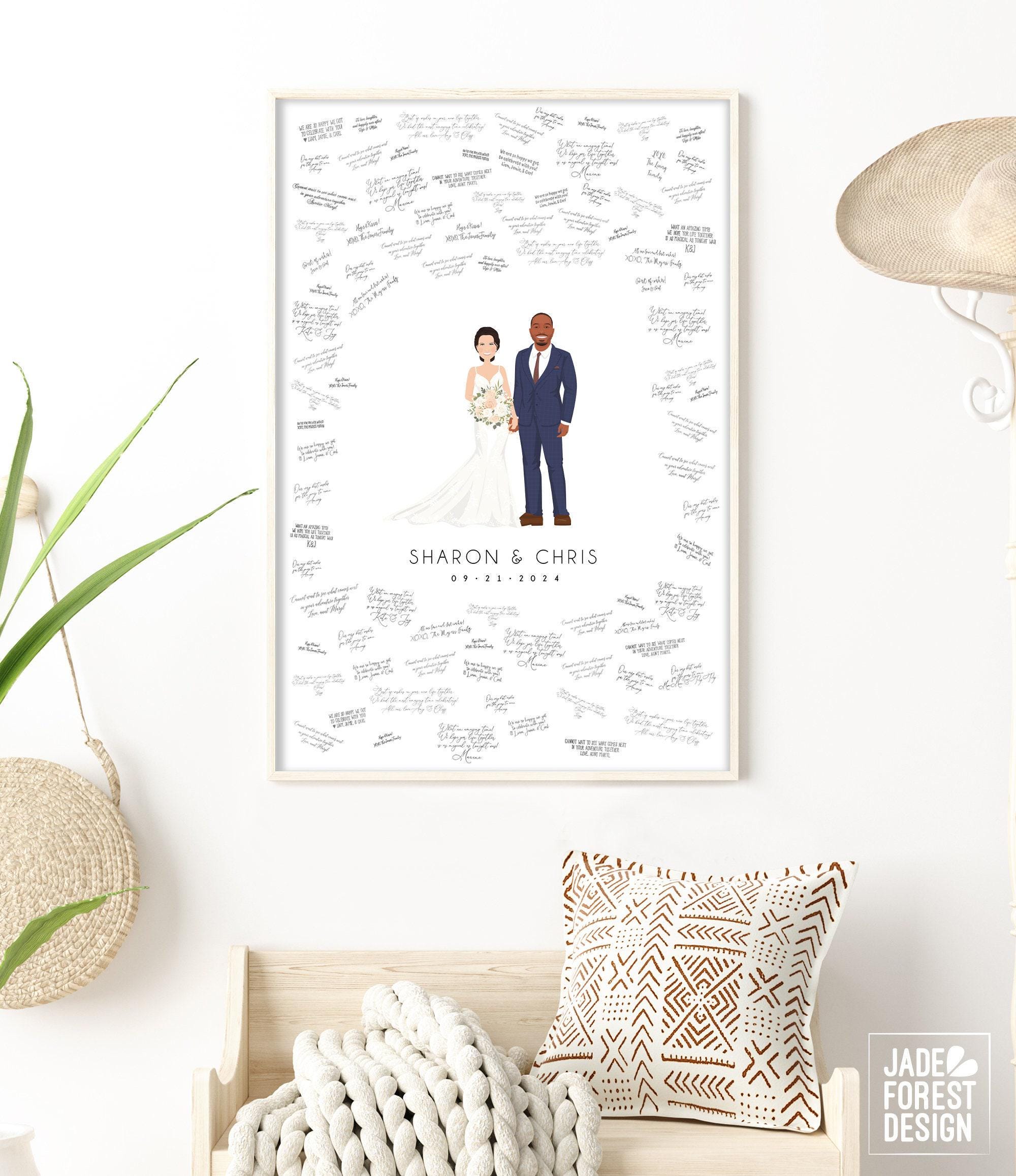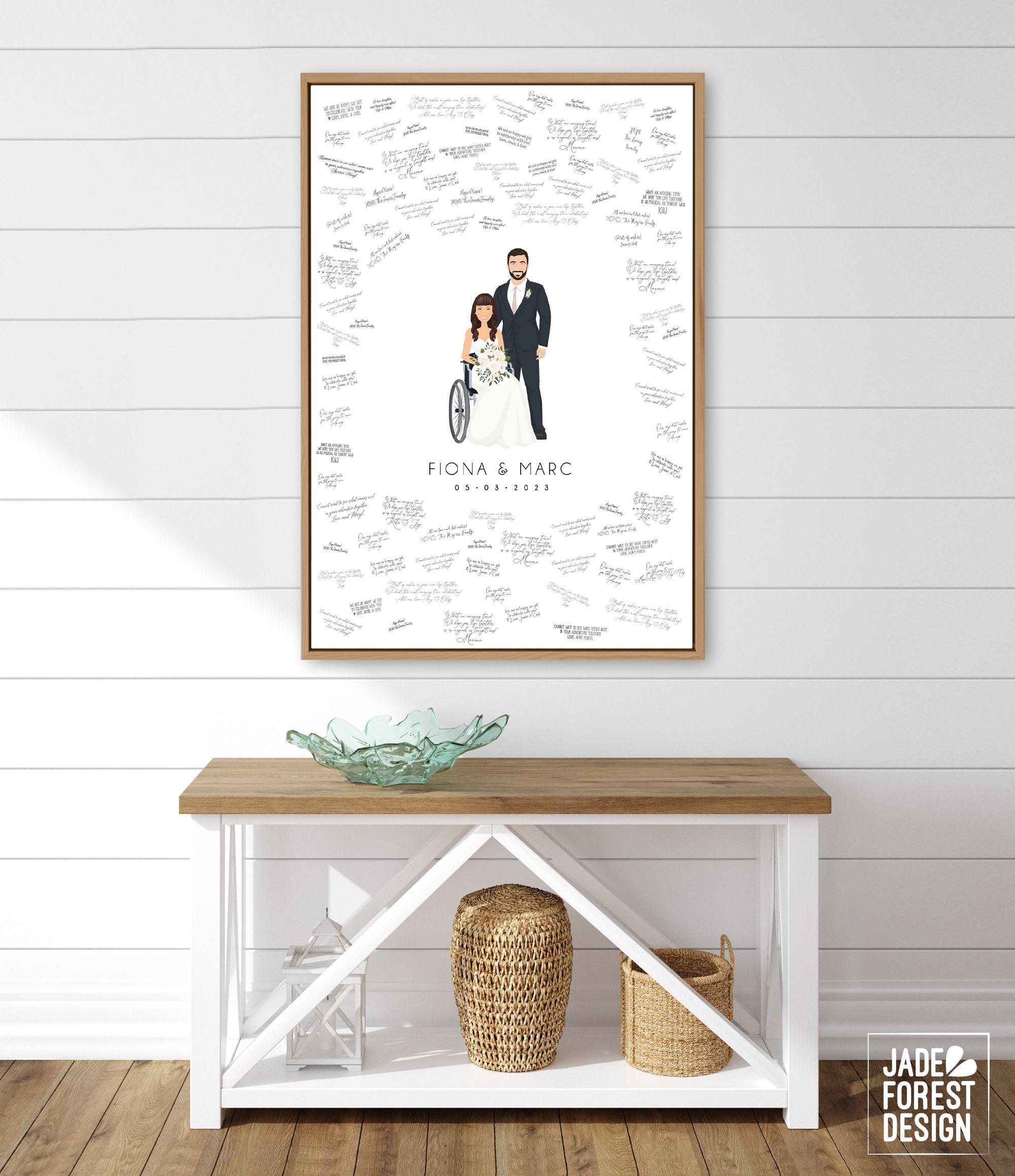 Celebrate your special day with a unique wedding guest book alternative that your guests will truly enjoy signing. This custom portrait guest book canvas features a charming cartoon illustration of the happy couple, personalized to include your likeness, pets, and favorite details. Designed as a whimsical keepsake, this personalized couple dancing art turns your memories into a joyful work of art that will brighten your home for years.