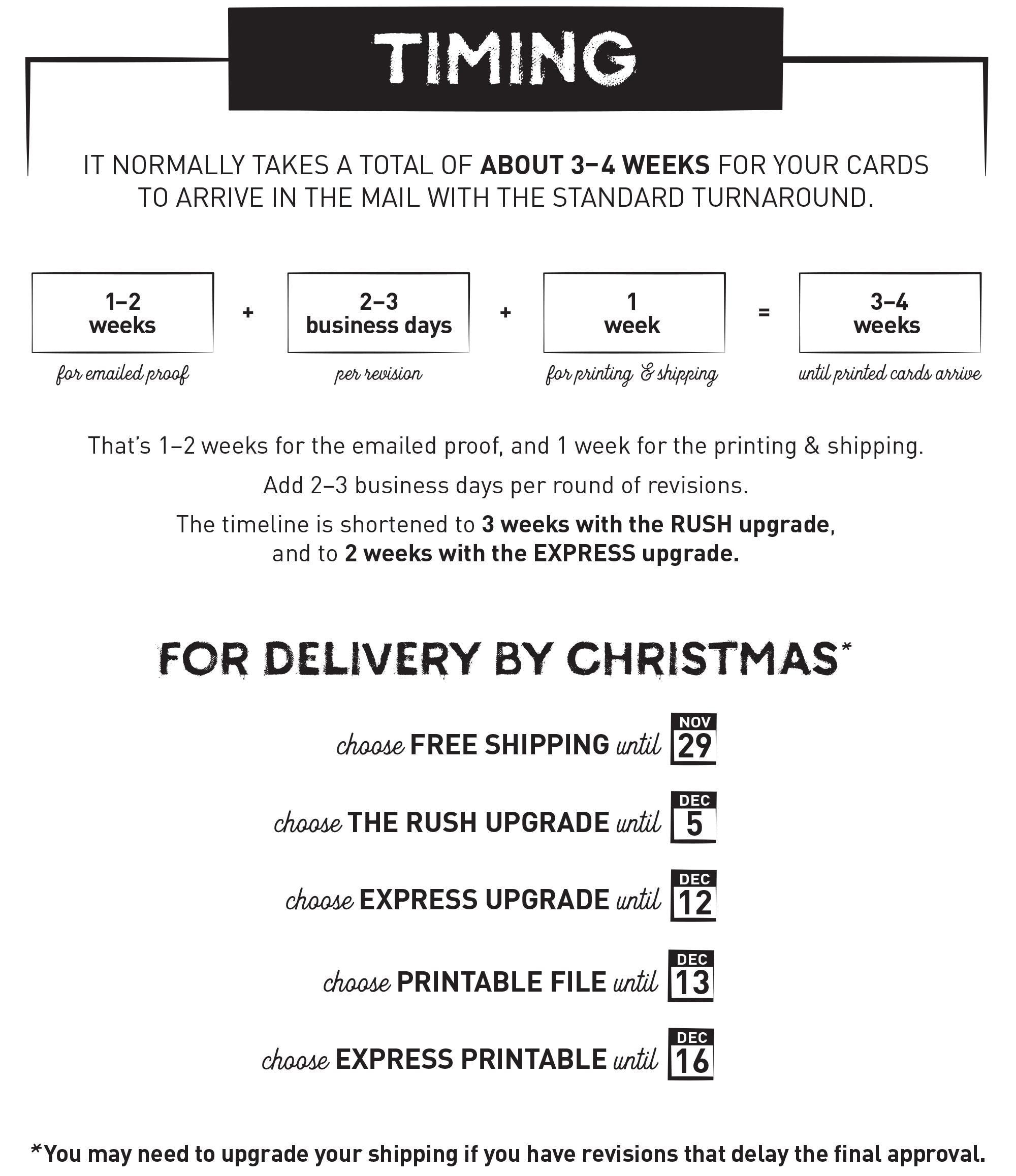 You may also choose to rush the printing & shipping portion of the process only. A link to shipping upgrade options will be included in the email you receive with your proof.
