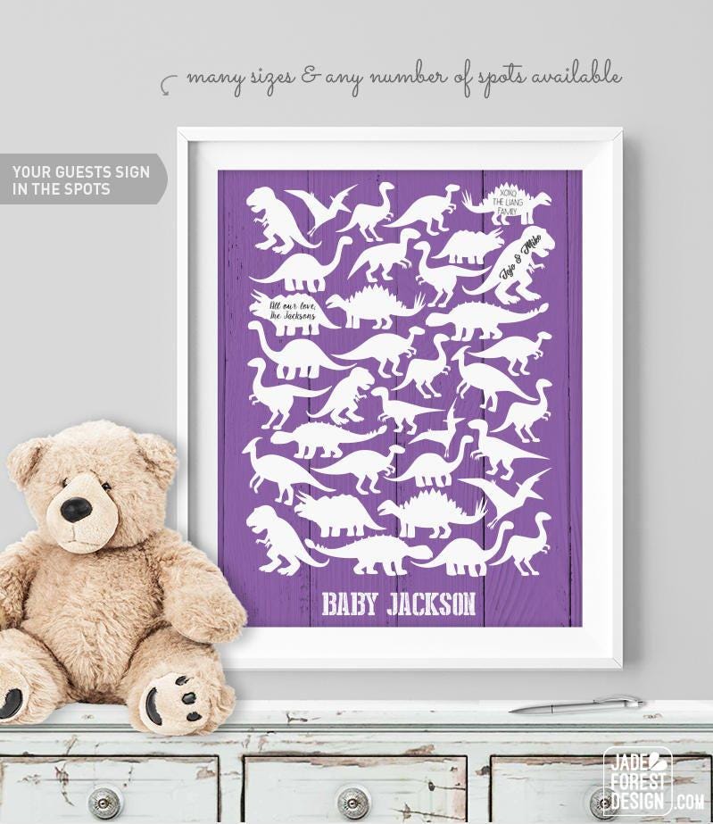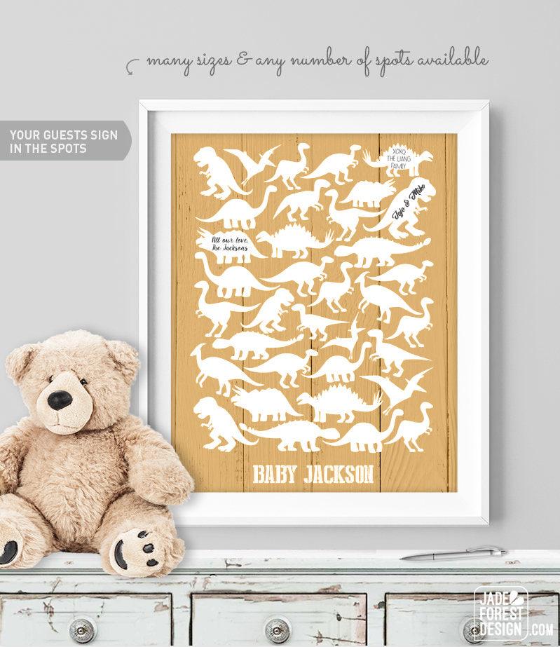 Celebrate your little one's special day with a charming dinosaur-themed guest book alternative that offers a unique keepsake for years to come. This personalized sign invites guests to leave their mark on delightful prehistoric shapes, creating a memorable gift that stands out from traditional options. Crafted with care, this dino-themed print is perfect for baby showers, birthdays, or any party looking for a fun and creative twist.