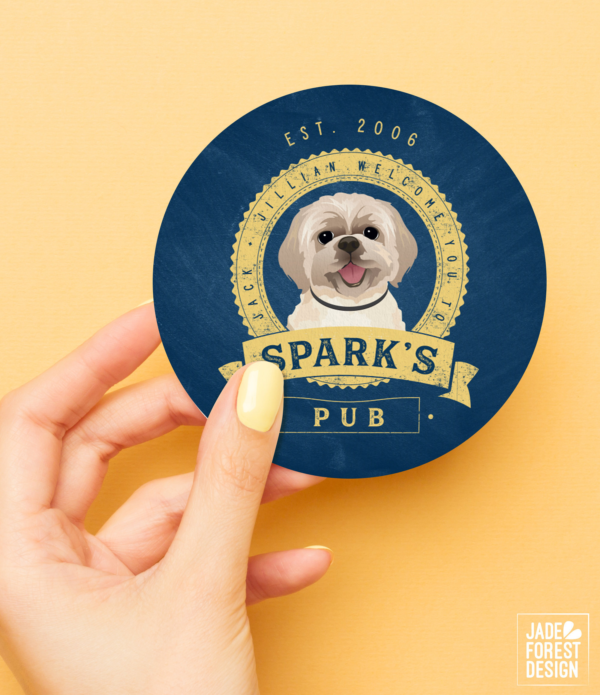 How about this unique twist on boring bar coasters? Including your pet in your celebration should be fun, and these coasters are just the ticket! They feature a cartoon illustration of your pet, created from your photos and description. The artwork will be completely customized to look just like them, and the wording and colors are also up to you!