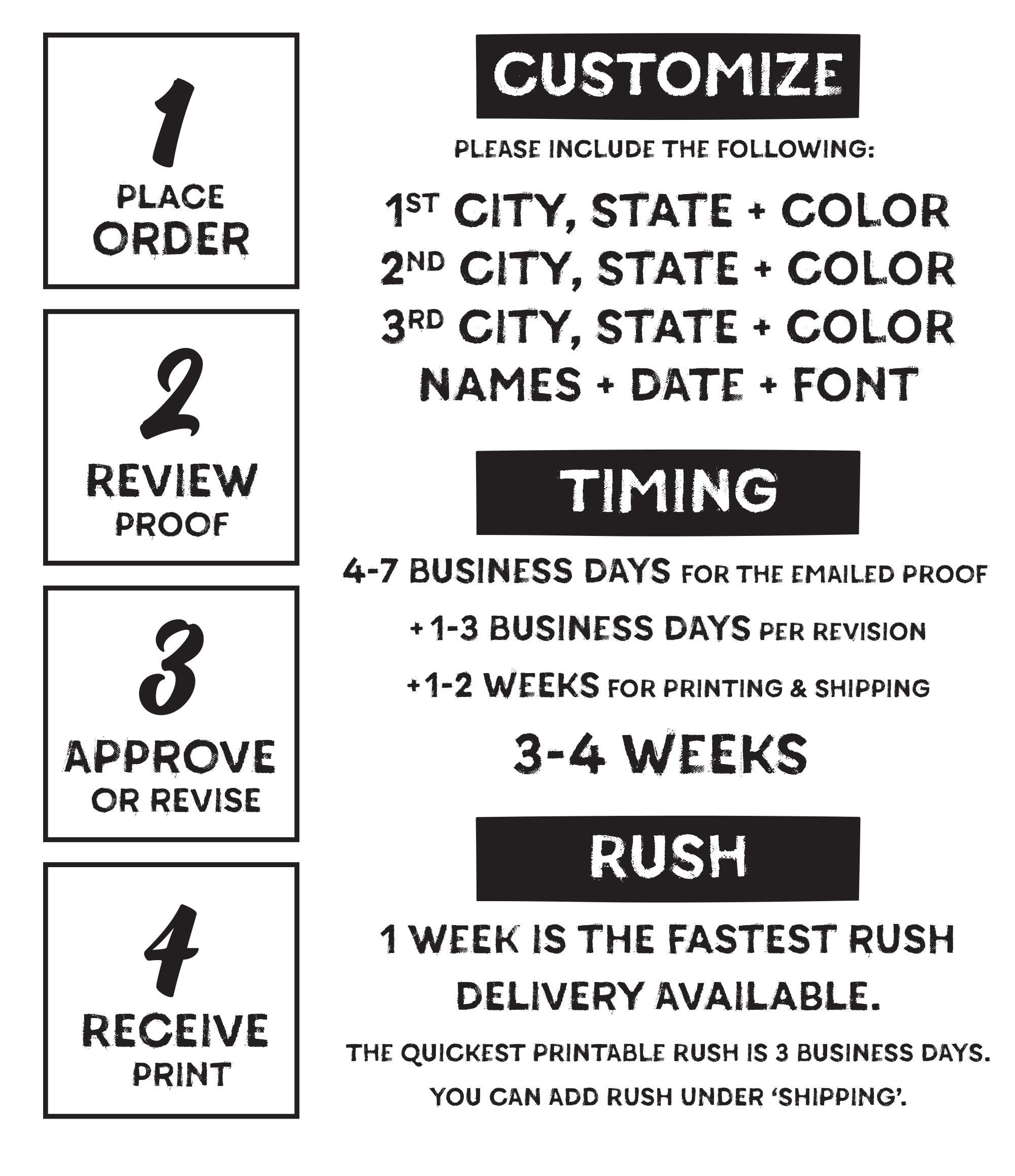 You may also choose to rush the printing & shipping portion of the process only. A link to shipping upgrade options will be included in the email you receive with your proof.