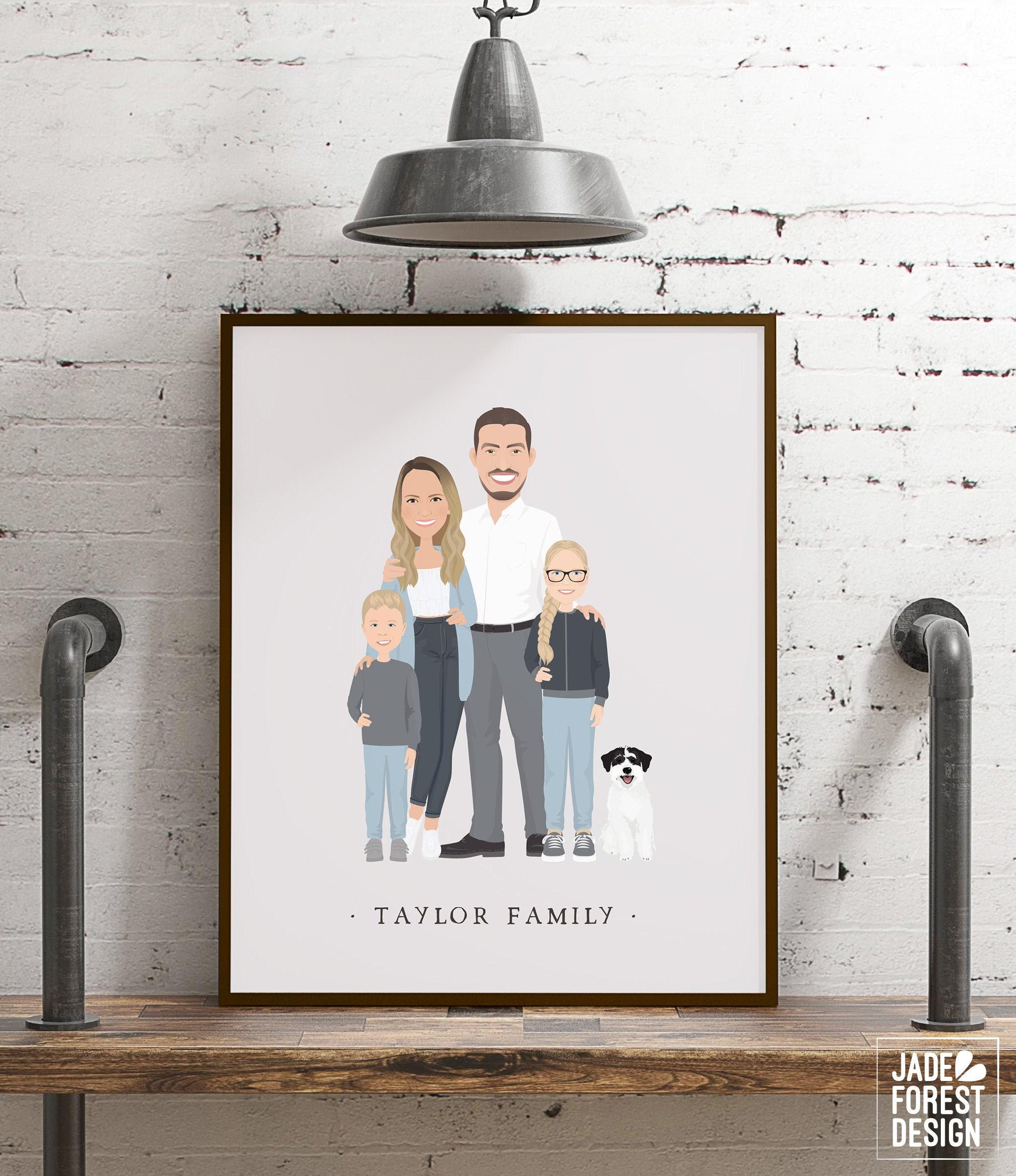 Celebrate your unique family story with a custom portrait that captures every cherished detail. This personalized gift brings together parents and children in a charming family drawing, crafted lovingly from your photos to reflect hairstyles, clothing, and even beloved pets. Whether you choose a trendy portrait art style or a boho illustration, this keepsake is designed to become a treasured family gift idea.