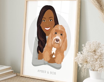 Pet Portrait Art: Custom Dog and Human Drawing - Personalized Keepsake